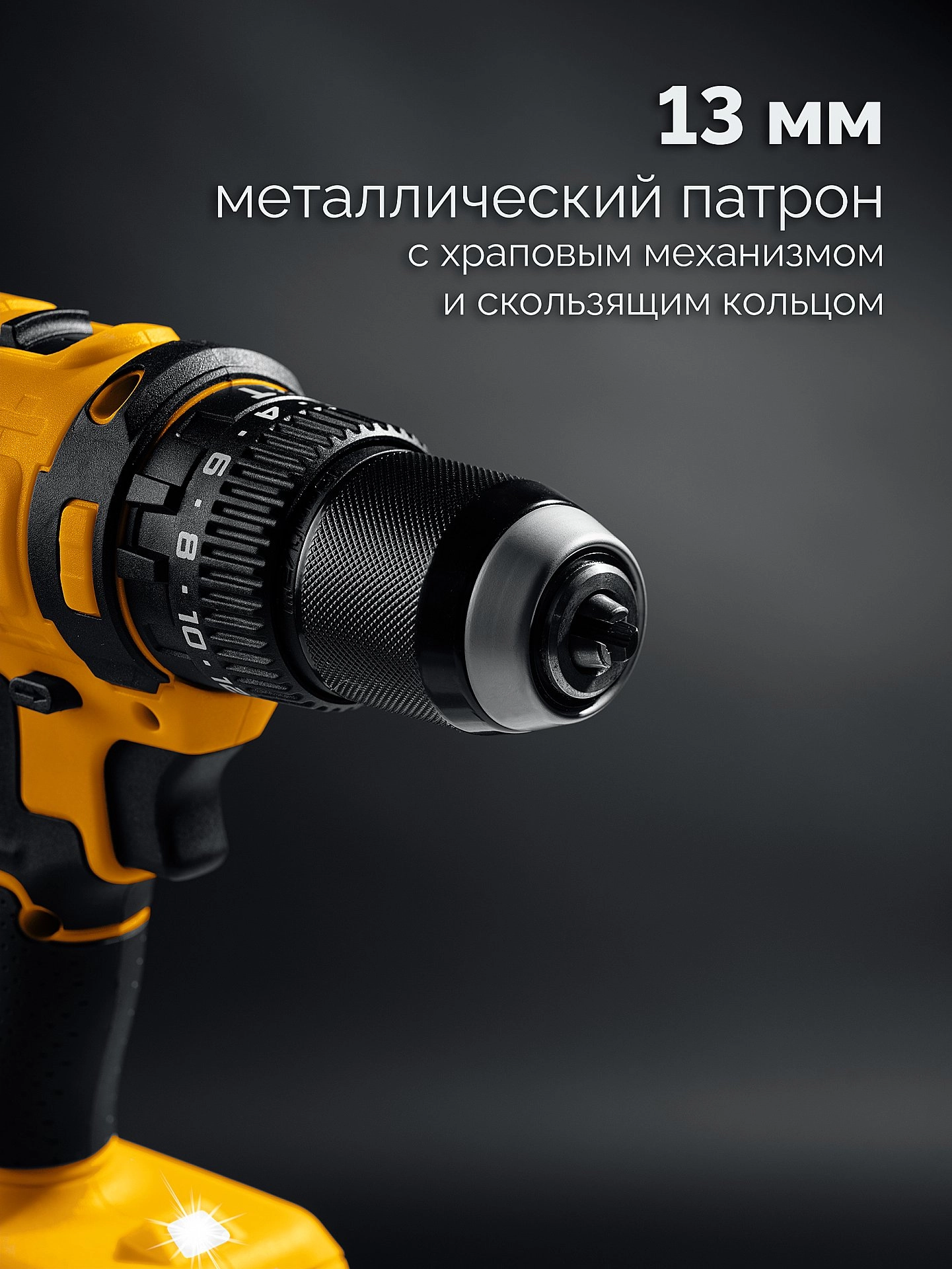 Бренд: STEHERБесщеточная дрель-шуруповерт STEHER системы LMS с увеличенным крутящим моментом предназначена для быстрого заворачивания саморезов до 8 мм диаметром и сверления отверстий до 30 мм в дереве. Длительная работа от одного заряда обеспечивается эффективным двигателем BRUSHLESS