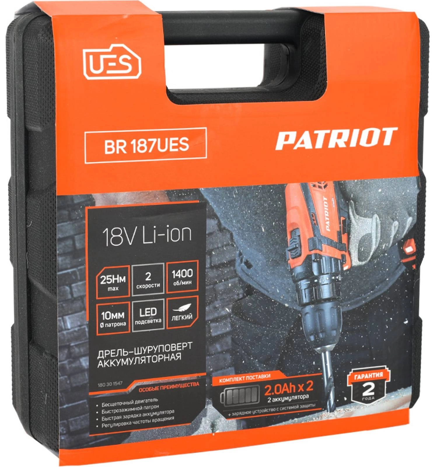 ПроизводителиДрель-шуруповерт BR 187UES (18В 2,0 А/ч Li-ion 2акк.+ЗУ 400-1400 об/мин 25Нм кейс) PATRIOT / OPTIMA