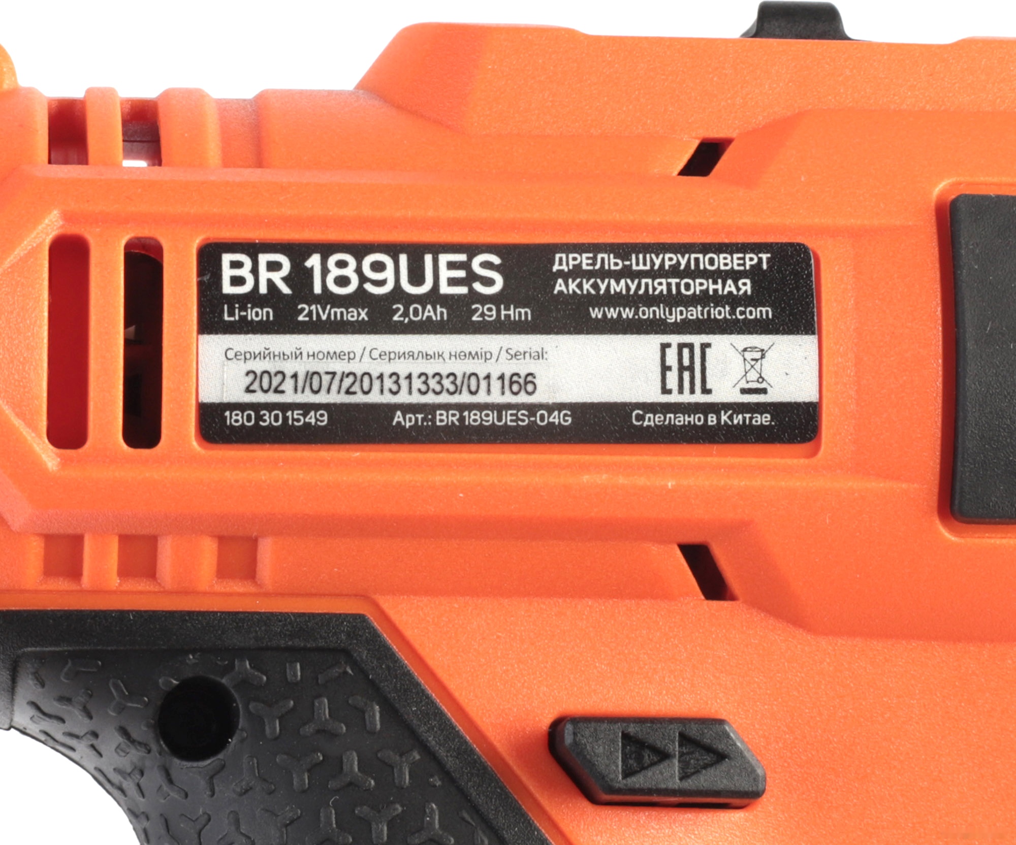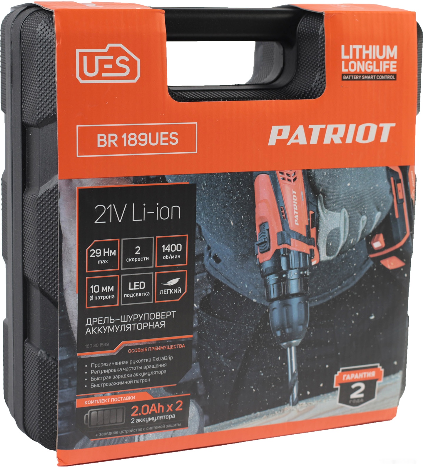 ПроизводителиДрель-шуруповерт BR 189 UES (21.0 В, 2 акк. х 2.0 А/ч Li-Ion, 29 Нм, чем.) PATRIOT / OPTIMA