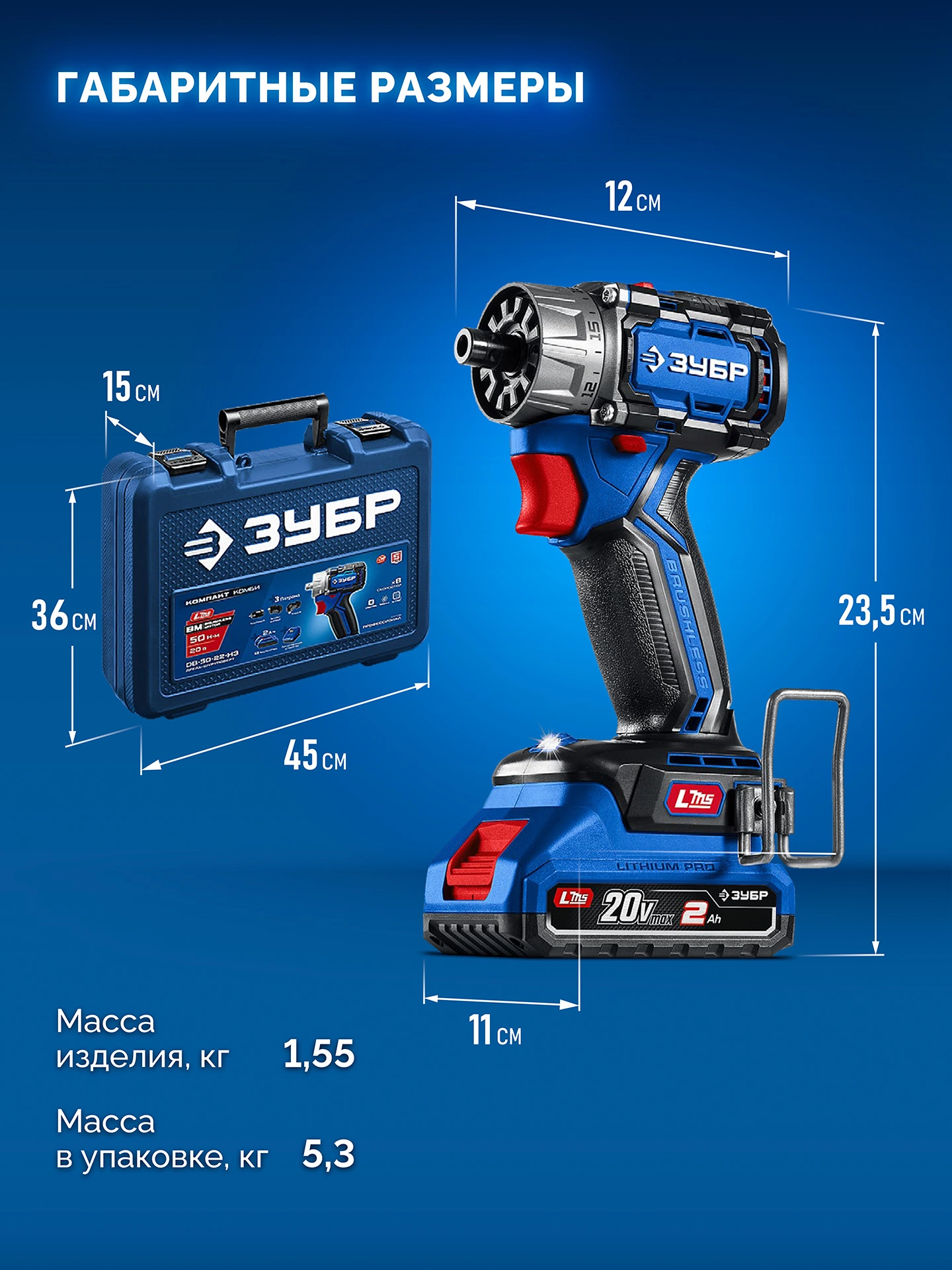 ПроизводителиДрель-шуруповерт комби аккум. DB-50-22-H3 (LMS) (20.0 В, 2 акк. х 2.0 A/h Li-Ion, 50 Нм, чем.) ЗУБР