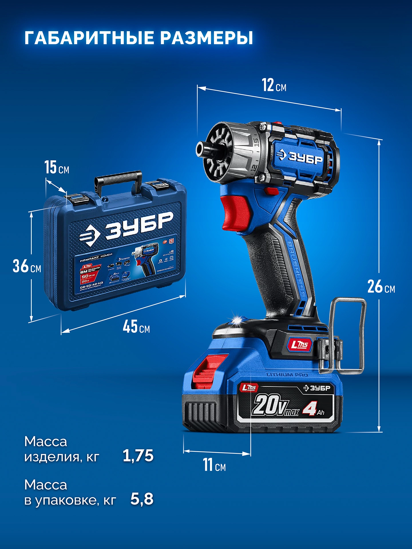 ПроизводителиДрель-шуруповерт комби аккум. DB-50-42-H3 (LMS) (20.0 В, 2 акк. х 4.0 A/h Li-Ion, 50 Нм, чем.) ЗУБР