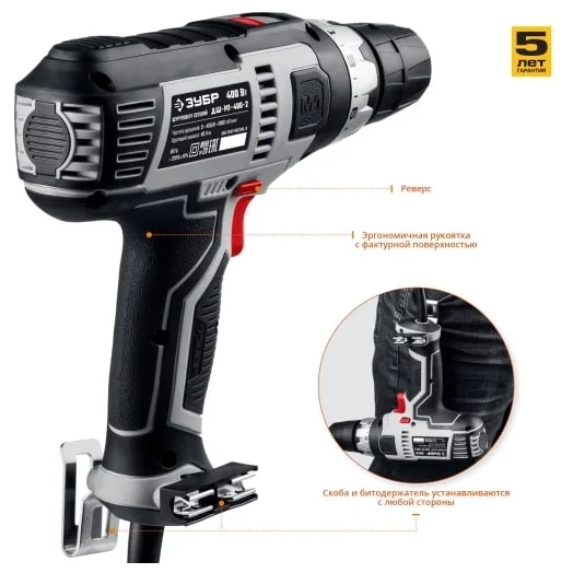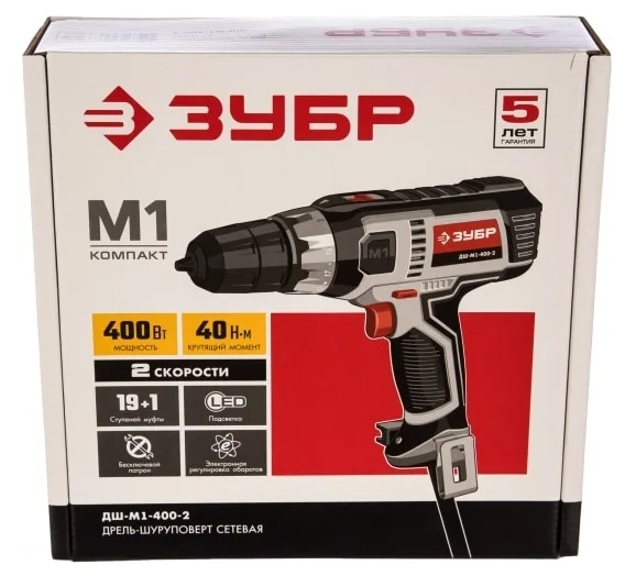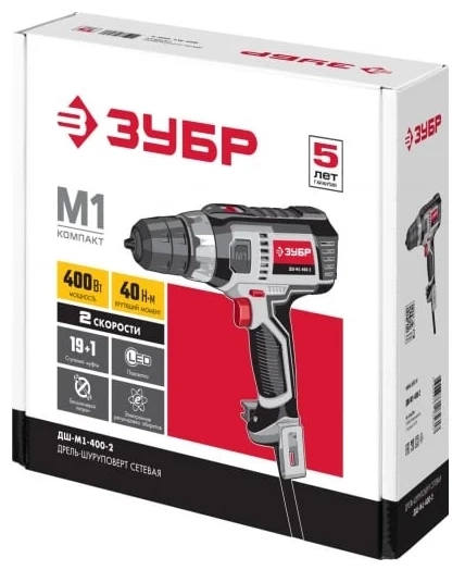 ПроизводителиДрель-шуруповерт сетевая ДШ-М1-400-2 (400 Вт, 40 Нм, кор.) ЗУБР
