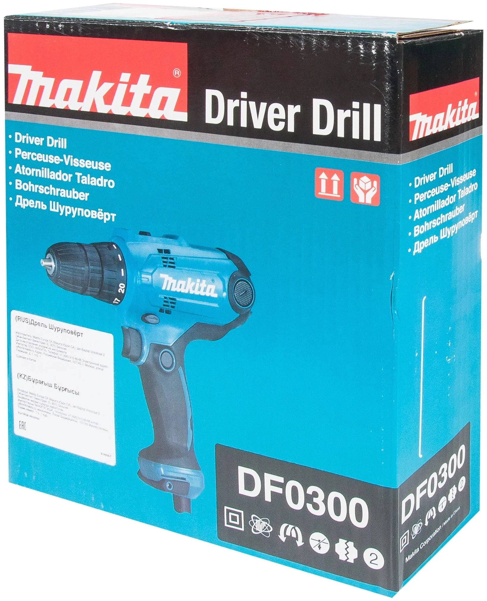 ХарактеристикиАртикул DF0300Бренды MakitaСтрана производства КитайГарантия 12 месяцевТип дрель-шуруповертПотребляемая мощность 320Количество скоростей 2Макс. крутящий момент 56Число оборотов холостого хода 1500Макс. диаметр сверления, дерево 28Макс. диаметр сверления, металл 10Диаметр патрона 10Скорость вращения 1500Кейс в комплекте нетРежимы работы сверлениеВес 1200Питание сетьМощность 320Патрон быстрозажимнойДлина 220Режимы скорости вращения 2Ширина 67Высота 206Реверс естьДополнительная рукоятка нетКейс нетПылесборник нетПодсветка нетОписание набора Дрель - Бита - КоробкаСверла нетБиты (насадки-отвертки) естьФиксация кнопки включения ДаРегулировка крутящего момента 20Регулировка оборотов ДаОписание товара обновлено 28.01.2026 16:59:18Шуруповерт Makita DF0300 предназначен для заворачивания и выворачивания шурупов, также его можно использовать при сверлении. Инструмент имеет две скорости работы, регулировка оборотов возможна в пределах каждой скорости.