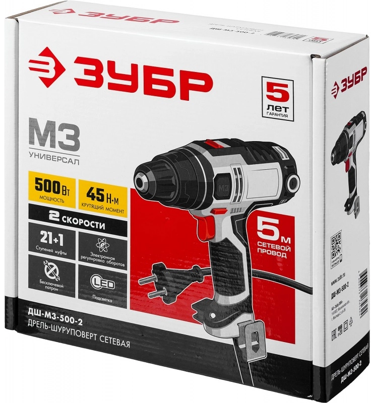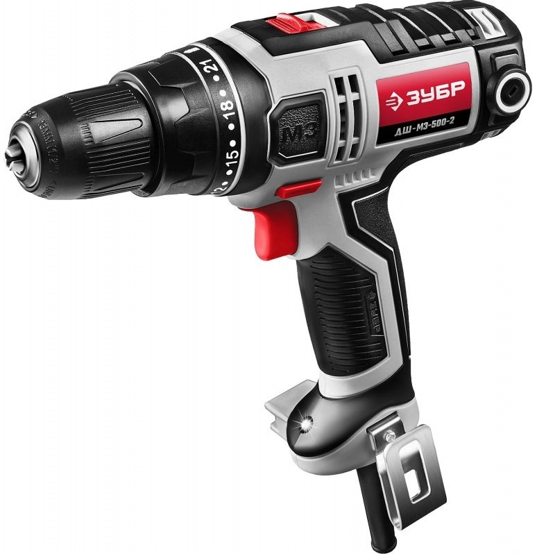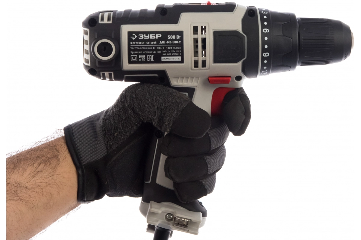 ХарактеристикиАртикул ДШ-М3-500-2Бренды ЗубрСтрана производства КитайТип дрель-шуруповертПотребляемая мощность 500Макс. крутящий момент 45Мин. крутящий момент, Н/м 28Диаметр патрона 13Скорость вращения 1800Цвет серый/черныйДлина сетевого шнура 5Кейс в комплекте нетРежимы работы шуруповертВес 1600Питание сетьПатрон быстрозажимнойДлина 245Ширина 75Высота 265Реверс естьПодсветка естьФиксация шпинделя ДаКоличество скоростей работы 2Описание товара обновлено 08.12.2025 14:08:50Описание