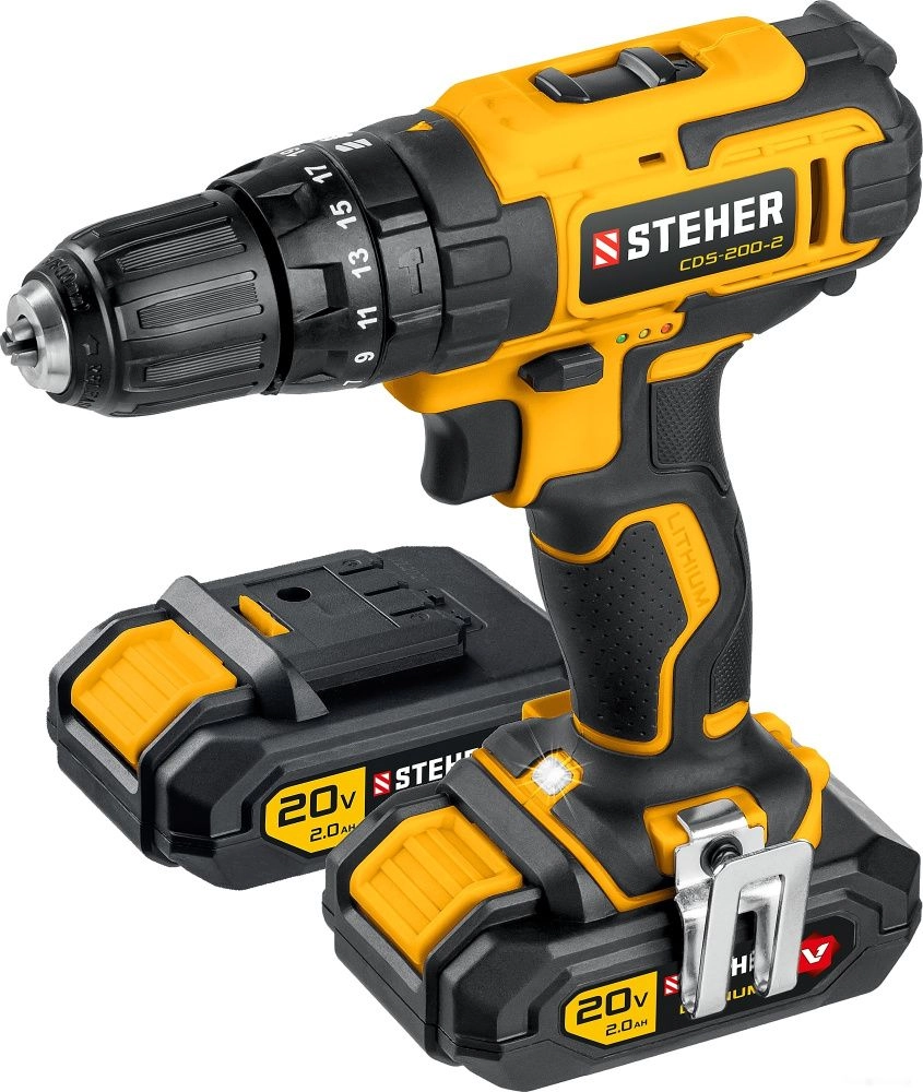 ПроизводителиДрель-шуруповерт ударная аккум. CDS-200-2 (20.0 В, 2 аккум. х 2.0 А/ч, 40 Нм, чем.) STEHER