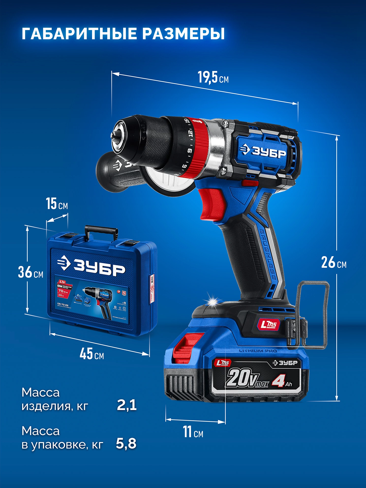 ПроизводителиДрель-шуруповерт ударная аккум. DBS-70-42 (LMS) (20.0 В, 2 акк. х 4.0 A/h Li-Ion, 70 Нм, чем.) ЗУБР