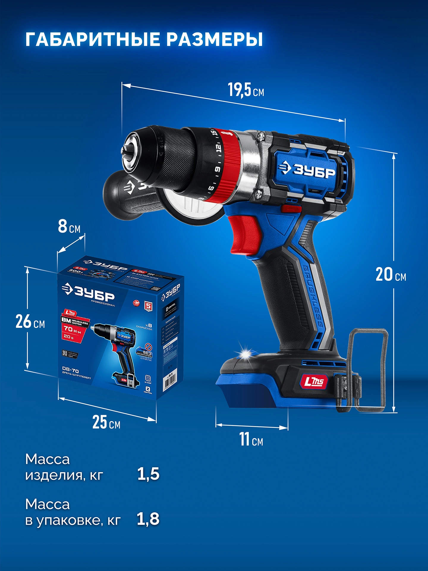ПроизводителиДрель-шуруповерт ударная аккум. DBS-70 (LMS) (20.0 В, без АКБ и ЗУ, 70 Нм, кор.) ЗУБР