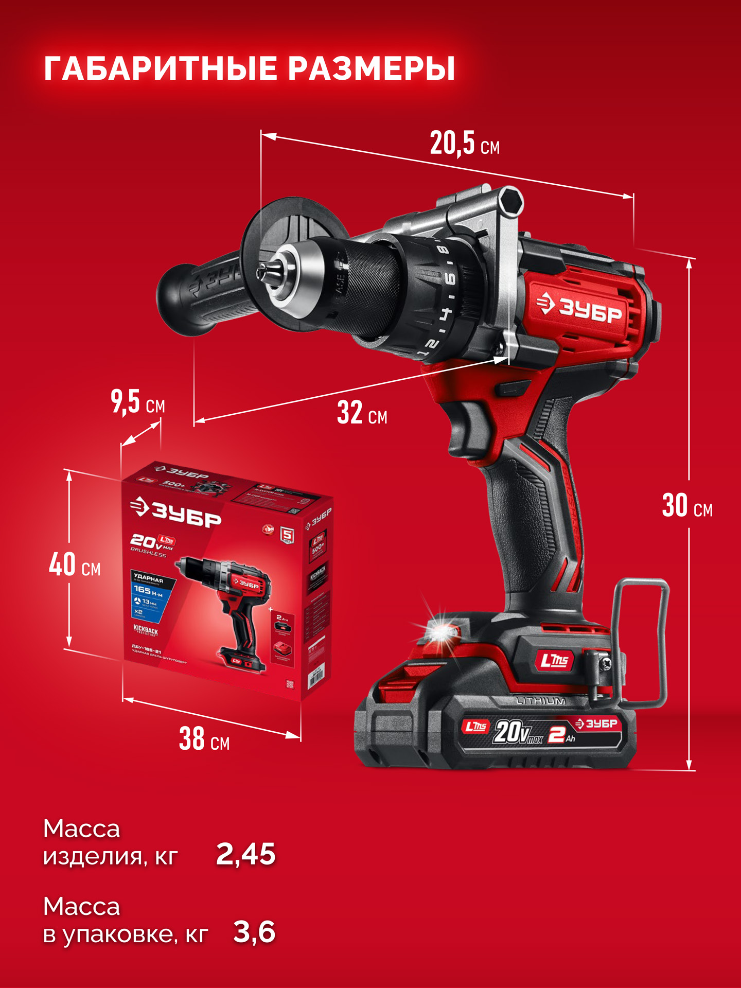 ПроизводителиДрель-шуруповерт ударная аккум. ДБУ-165-21 (LMS) (20.0 В, 1 акк. х 2.0 А/h, 165 Нм, кор.) ЗУБР