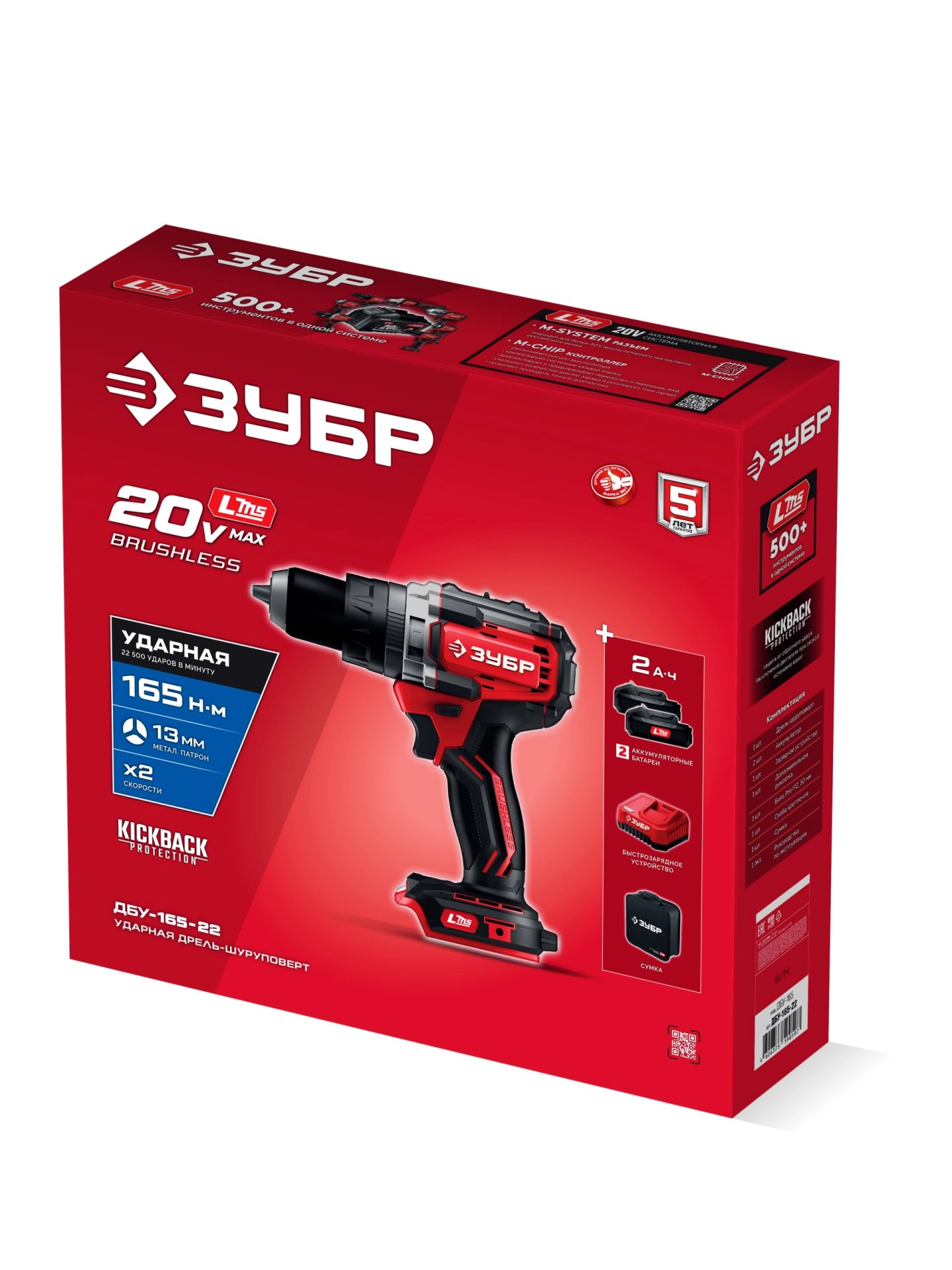 ПроизводителиДрель-шуруповерт ударная аккум. ДБУ-165-22 (LMS) (20.0 В, 2 акк. х 2.0 А/h, 165 Нм, сум.) ЗУБР