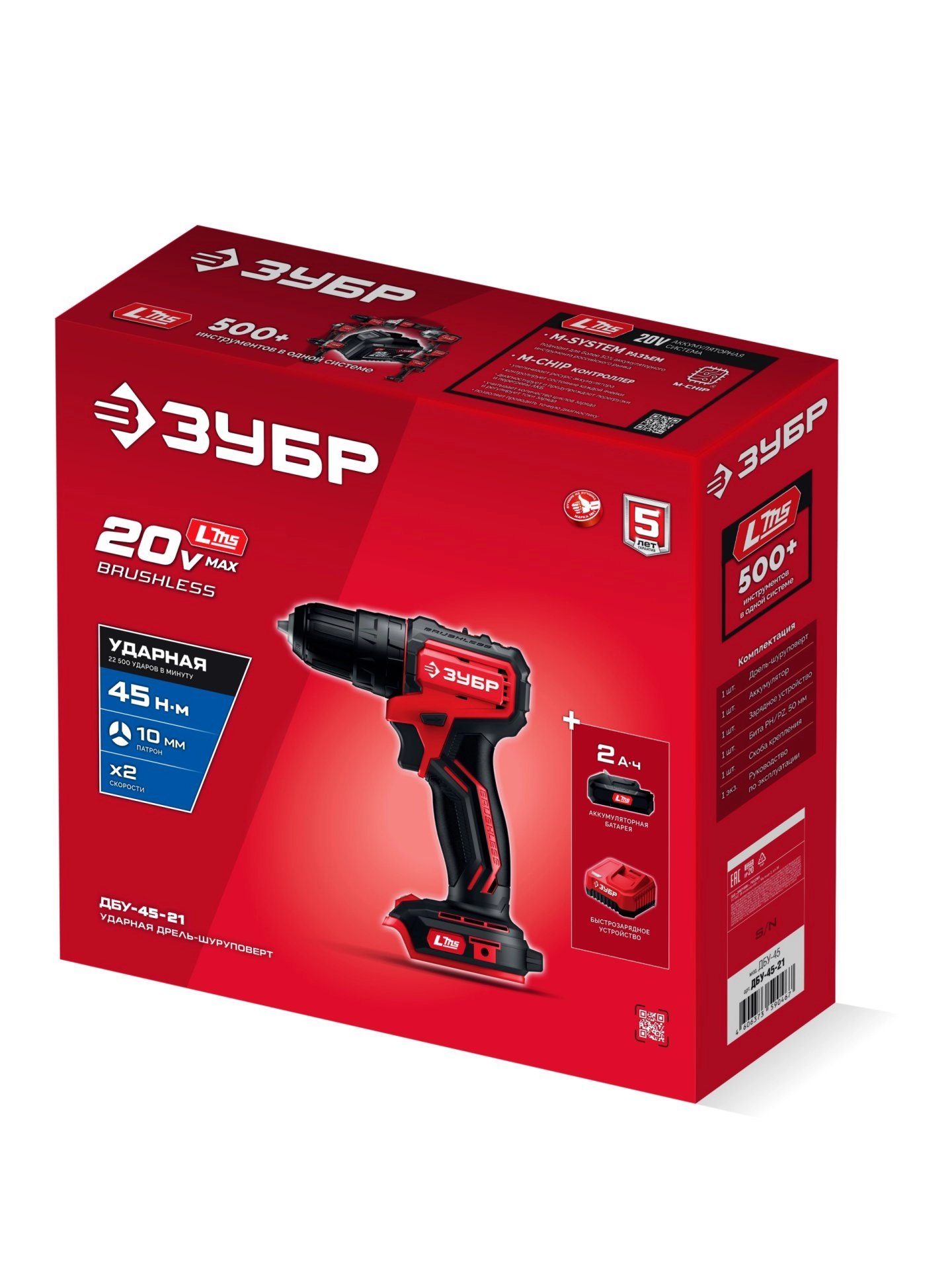 ПроизводителиДрель-шуруповерт ударная аккум. ДБУ-45-21 (LMS) (20.0 В, 1 акк. х 2.0 А/h, 45 Нм, кор.) ЗУБР