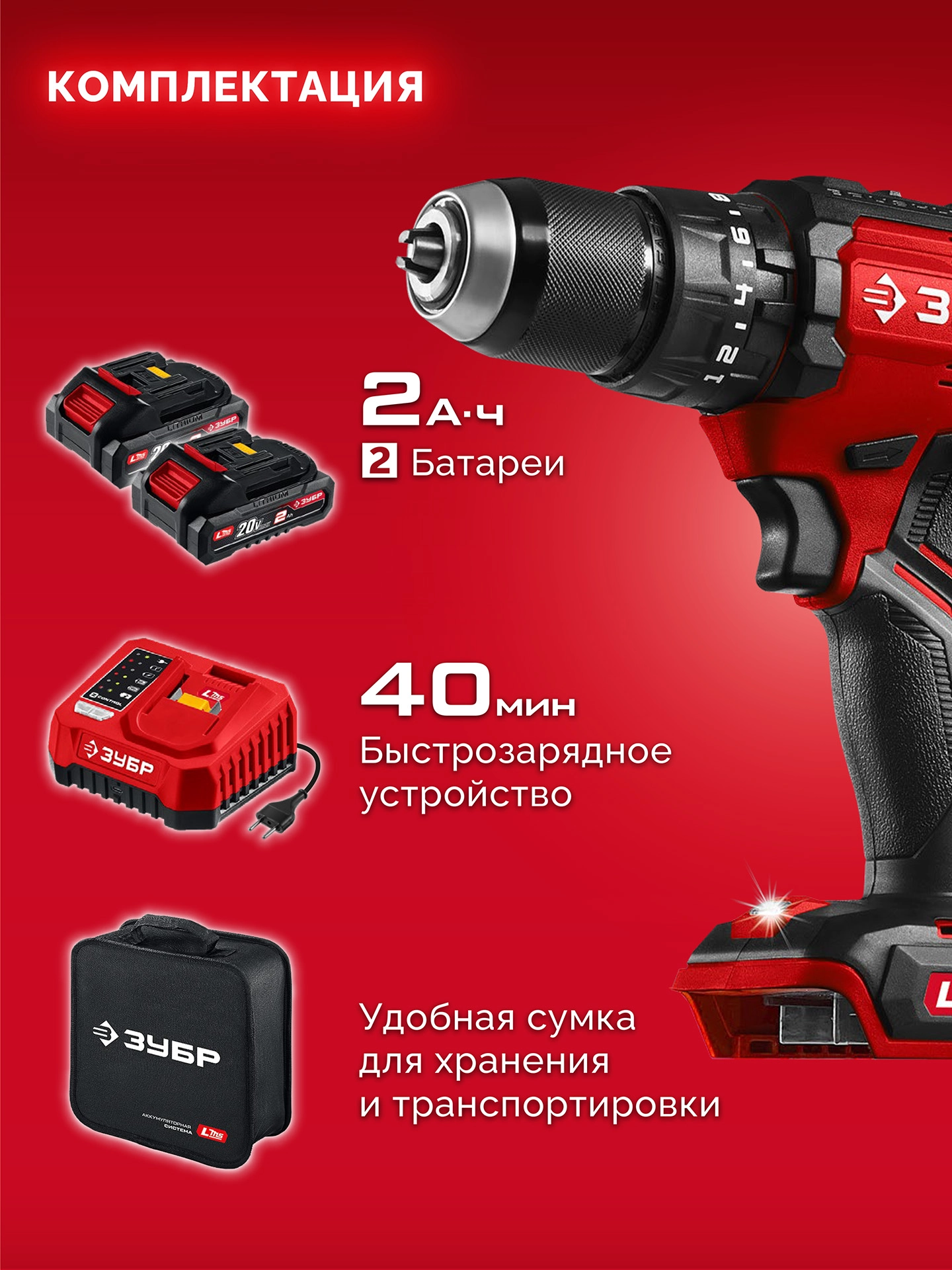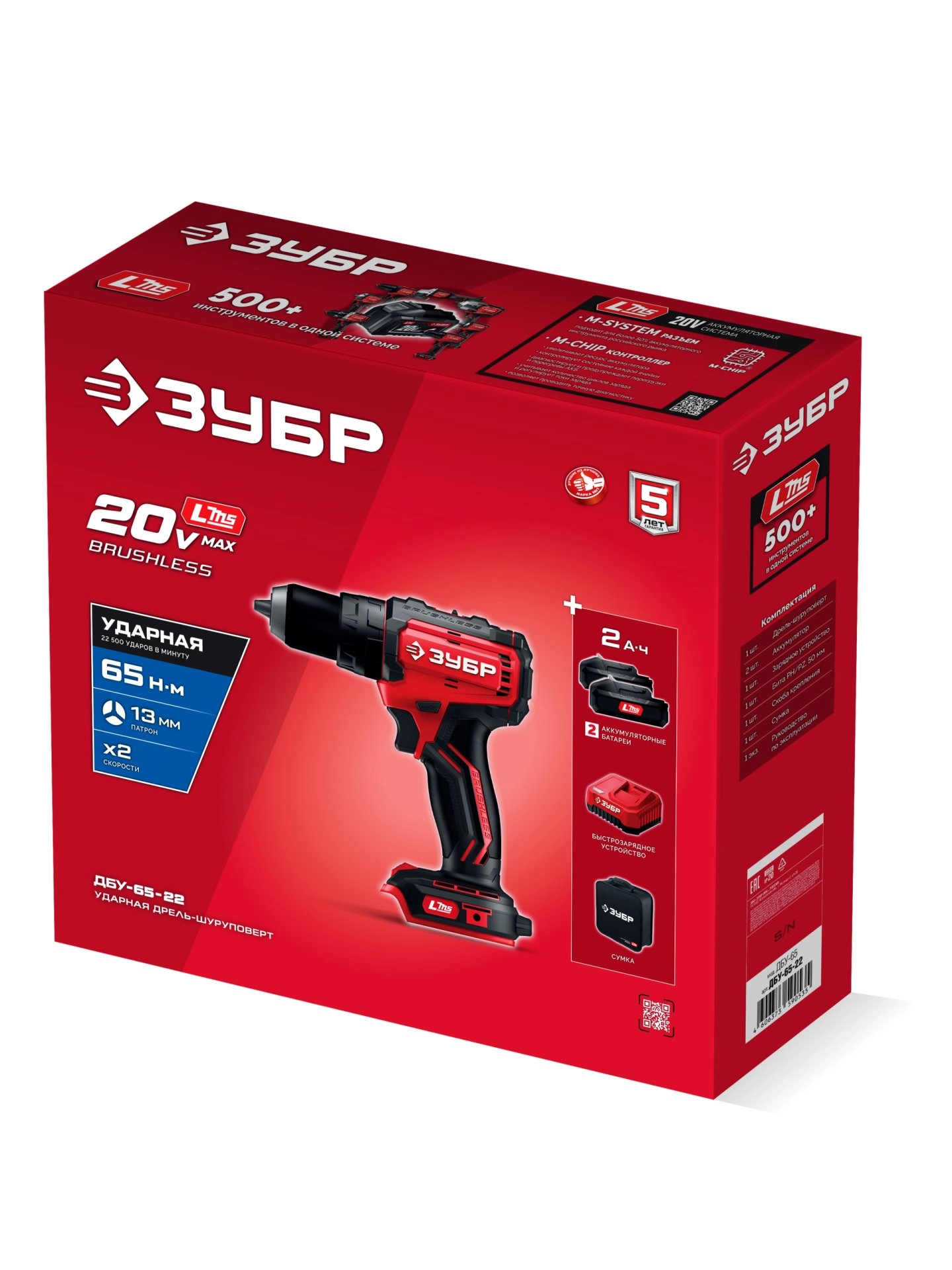 ПроизводителиДрель-шуруповерт ударная аккум. ДБУ-65-22 (LMS) (20.0 В, 2 акк. х 2.0 А/h, 65 Нм, сум.) ЗУБР