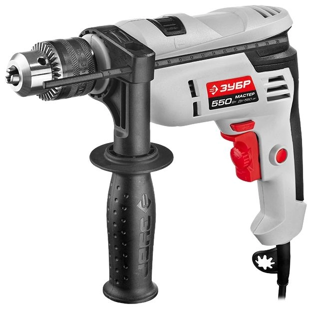 СТАНДАРТУровень качества. При классификации продуктов, имеющих схожее наименование, но обладающие различными потребительскими свойствами мы приняли следующий Вес факторов: 80% - подтвержденный ресурс, 15% - заявленная производительность/скорость, 5% - субъективные ощущения потребителя. ПодробнееКод товара: 0013729(4)Дрель "ЗУБР" - незаменимый помощник для сверления отверстий в различных материалах (дерево, сталь, кирпич, легкий бетон и т. д.).ХарактеристикиАртикул ДУ-550 ЭРБренды ЗубрСтрана производства КитайТип ударная дрельПотребляемая мощность 550Количество скоростей 1Число оборотов холостого хода 3000Макс. диаметр сверления, дерево 20Макс. диаметр сверления, металл 10Макс. диаметр сверления, бетон 13Диаметр патрона 13Число ударов 48000Скорость вращения 3000Рукоятка ДополнительнаяРеверс ЕстьДлина сетевого шнура 2Регулировка скорости ЕстьКейс в комплекте НетОграничитель глубины сверления ЕстьРежимы работы сверление с ударомПоддержание постоянных оборотов под нагрузкой НетВес 1.8Питание сетьПатрон ключевойДлина 29Режимы скорости вращения 1Ширина 27Регулировка скорости вращения электроннаяВысота 7.5Скорость удара 48000Реверс естьДополнительная рукоятка естьКлюч для патрона естьФиксация кнопки включения ДаОписание товара обновлено 08.12.2025 14:08:32Незаменимый помощник для сверления отверстий в различных материалах (дерево, сталь, кирпич, легкий бетон и т. д.). Компактная и легкая дрель с ключевым патроном, плавной регулировкой оборотов и надежной конструкцией - лучший подарок домашнему мастеру.Широкий диапазон регулировки частоты вращения, удобная эргономика - все, что нужно для качественной работы.