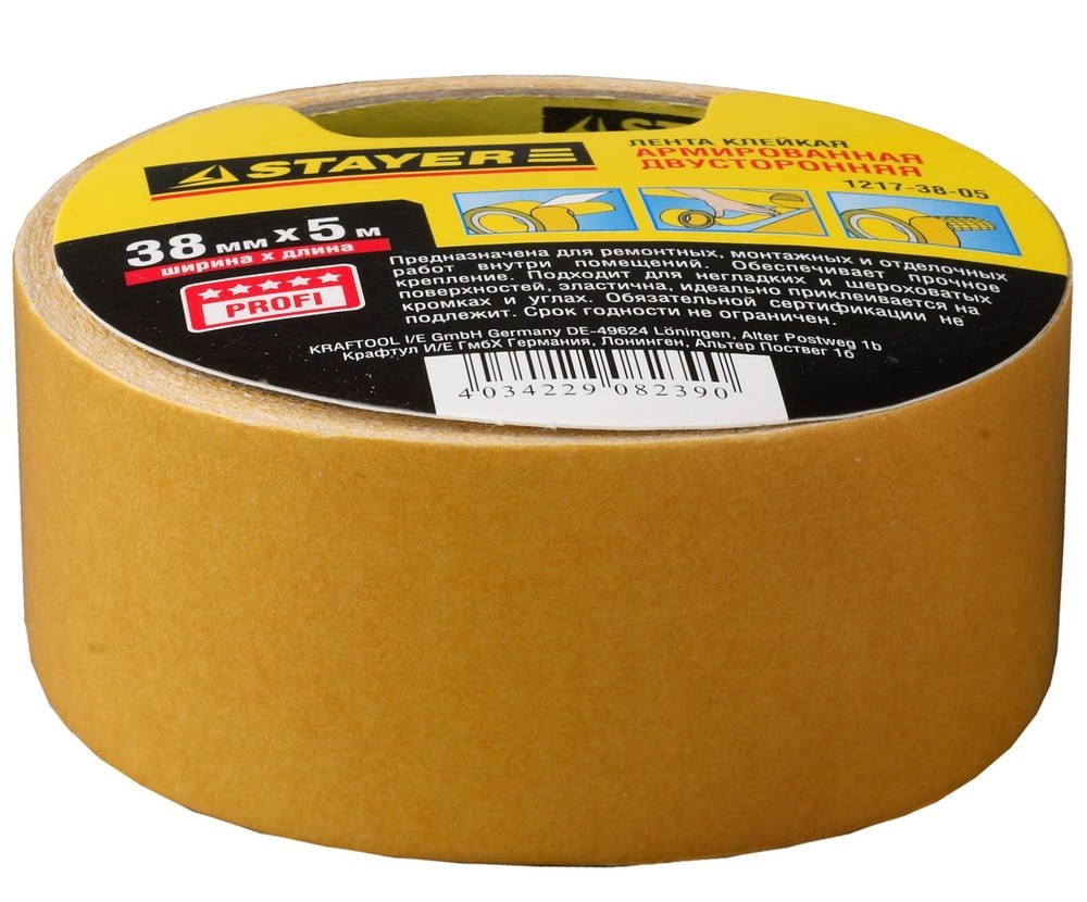 ПроизводителиЛента клеящая на тканевой основе 38мм/5м, двусторонняя "Profi" (1217-38-05) STAYER