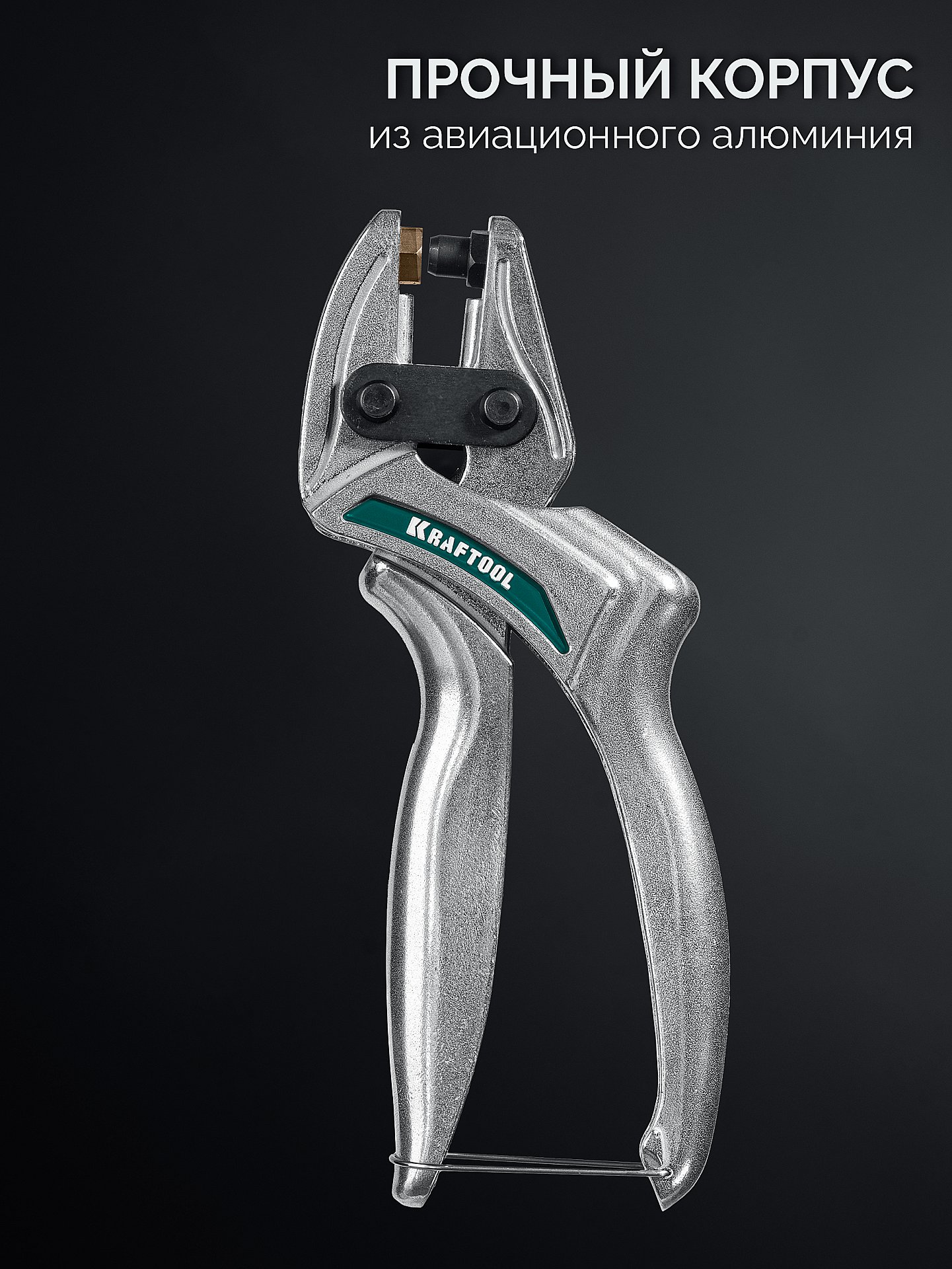 Бренд: KRAFTOOLПрофессиональный мощный дырокол с двухосной системой передачи усилия для вырубки круглых отверстий в коже, картоне, резине и пластике. LPP-6 (Leather Punch Professional) -профессиональный пробойник для кожи на 6 размеров отверстий