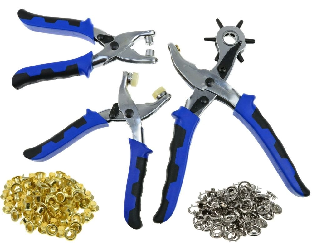 ПроизводителиДыроколы револьверные (пистолет.) для кожи, 3шт., 2.5-5мм, с набором люверсов и кнопок (G0182) GEKO