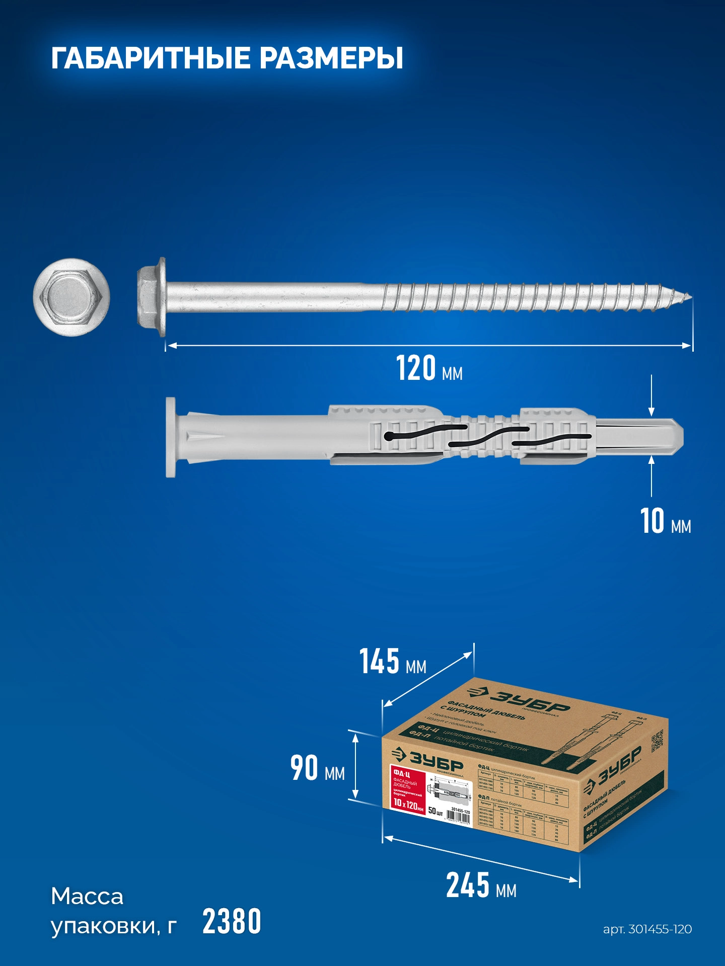 ПроизводителиДюбель фасадный, нейлон/цинк ФД-Ц 10х120мм, 50 шт (301455-120) ЗУБР