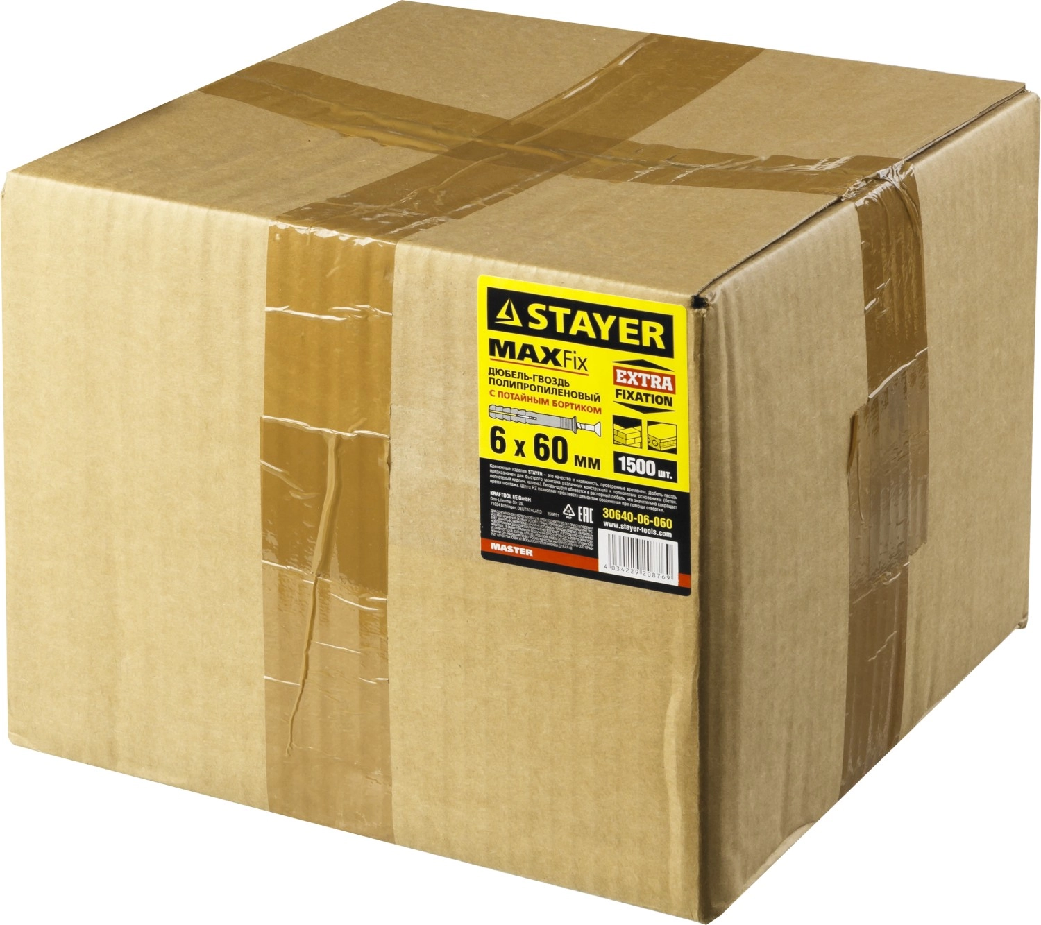 ПроизводителиДюбель-гвоздь быстрого монтажа полипропилен в потай Ø 6x60 мм, 1500шт. (30640-06-060) STAYER
