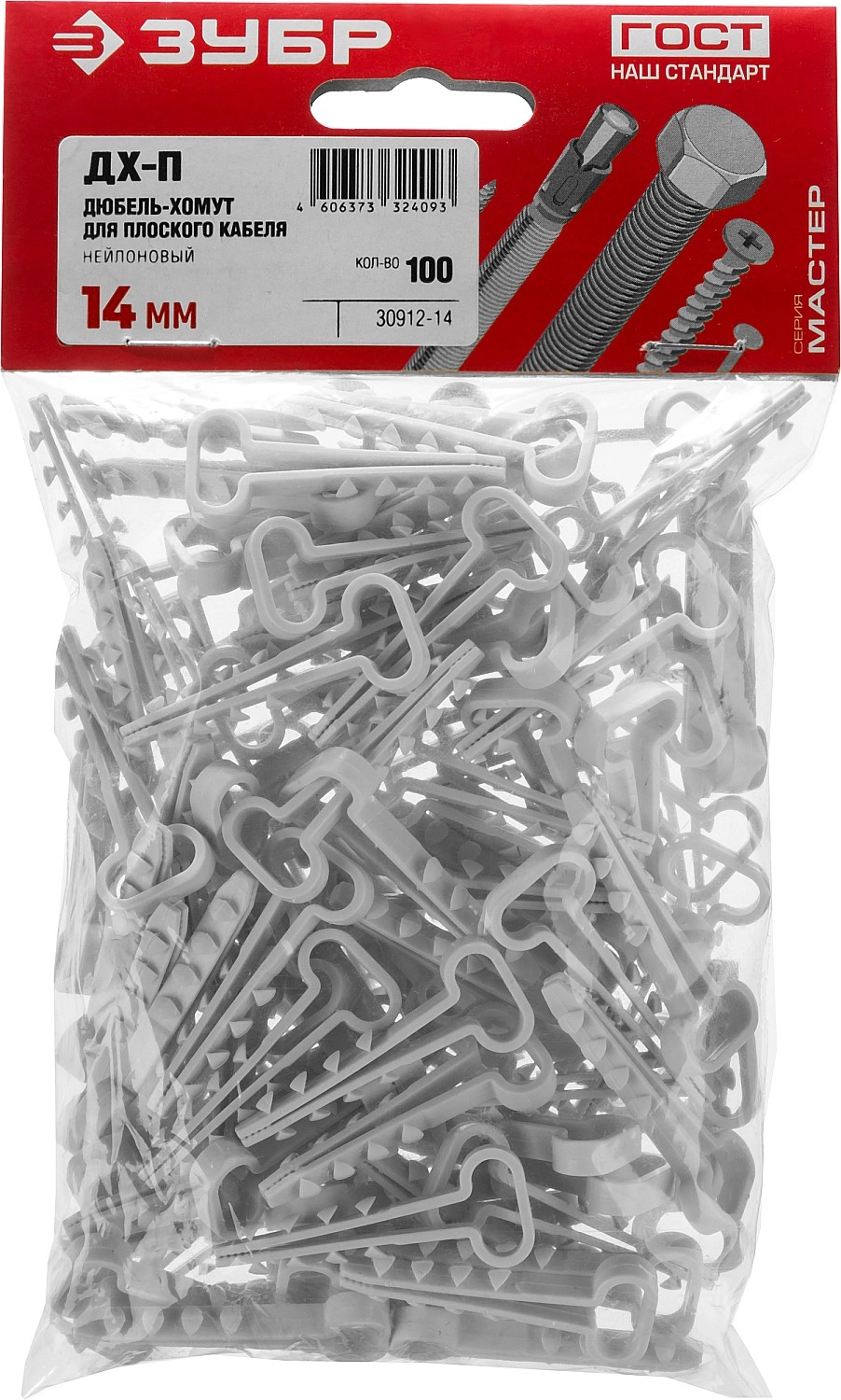 ПроизводителиДюбель-хомут для плоского кабеля нейлон Ø 14мм, 100шт. (30912-14) ЗУБР