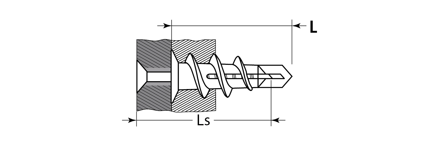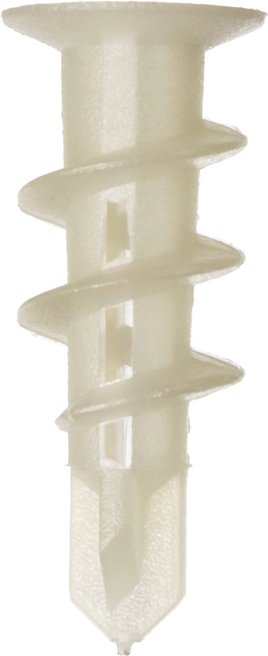 Высокая резьба с крупным шагом увеличивает площадь контакта и фиксирует дюбель в гипсокартоне, не разрушая его;