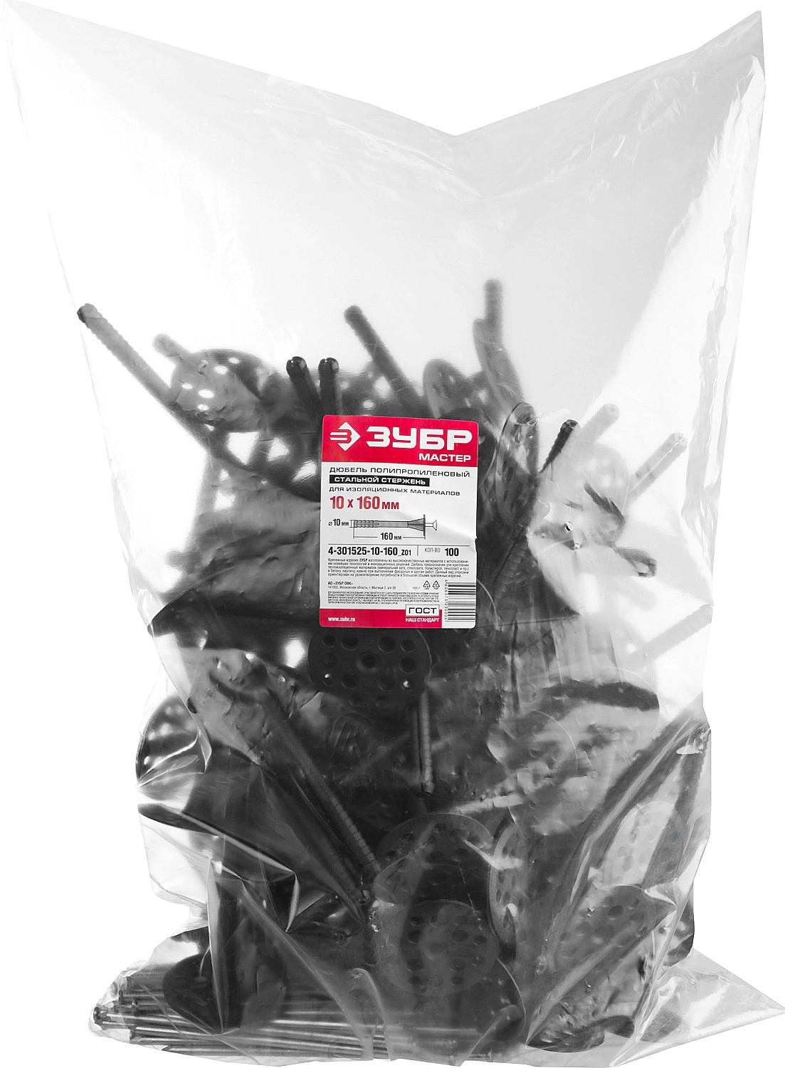 ПроизводителиДюбель полипропиленовый для изоляционных материалов 10x160 мм 100 шт (4-301525-10-160_z01) ЗУБР