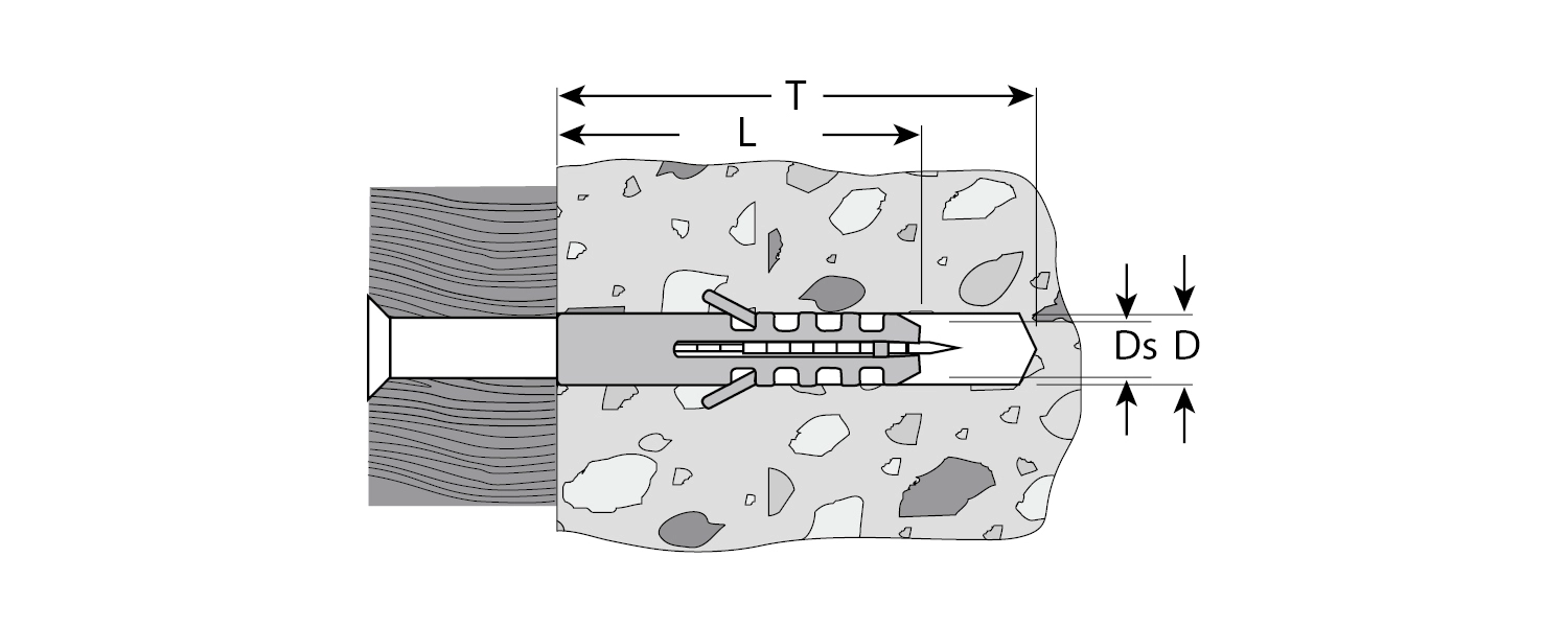 Специально разработанные усы предотвращают проворачивание установленного дюбеля в отверстии