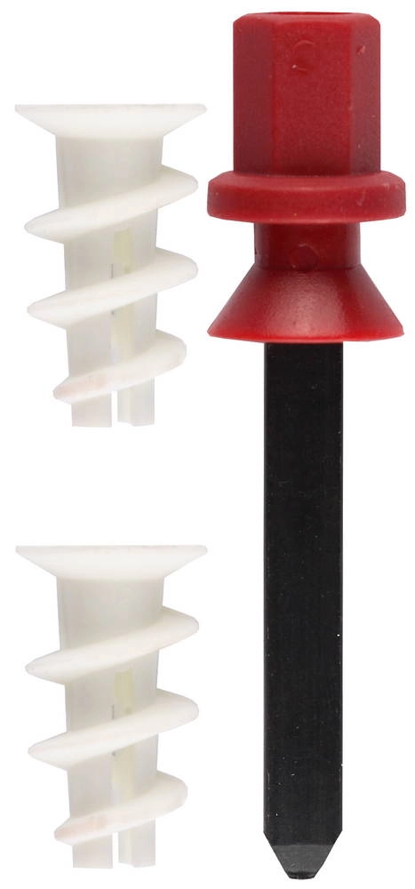 Высокая резьба с крупным шагом увеличивает площадь контакта и фиксирует дюбель в гипсокартоне, не разрушая его;