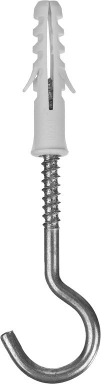 Дюбель устанавливается в предварительно просверленное отверстие. Крюк-полукольцо вкручивается в дюбель от руки или при помощи биты для крюков.