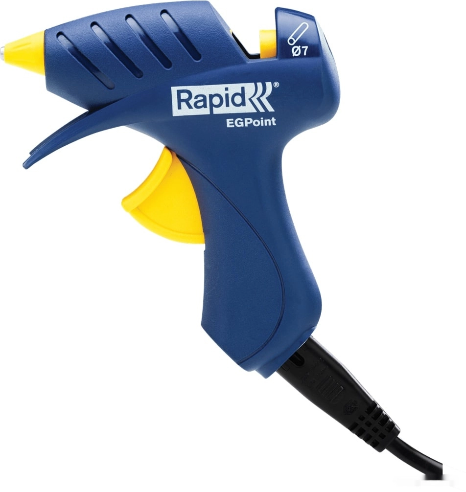 ПроизводителиПистолет клеевой, 10-80Вт/220В, стержни 7мм, работа без провода, расход 80 г/ч (5000432) RAPID