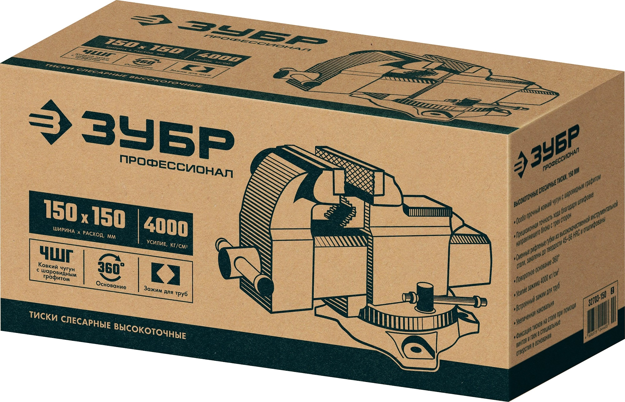 ПроизводителиТиски слесарные чугунные, поворотные 150мм, высокоточные (32703-150_z02) ЗУБР
