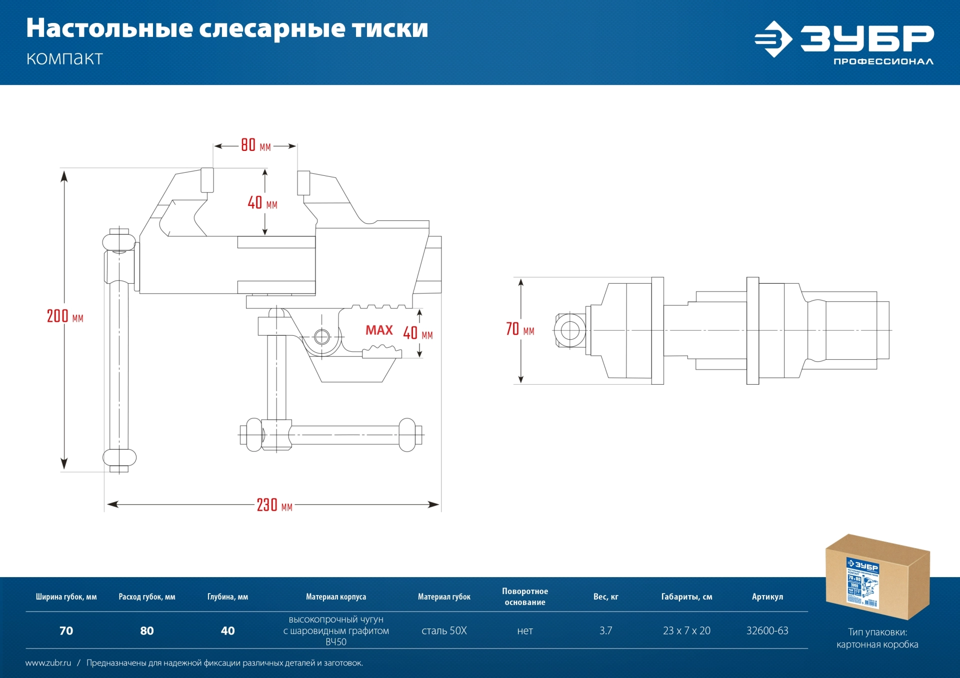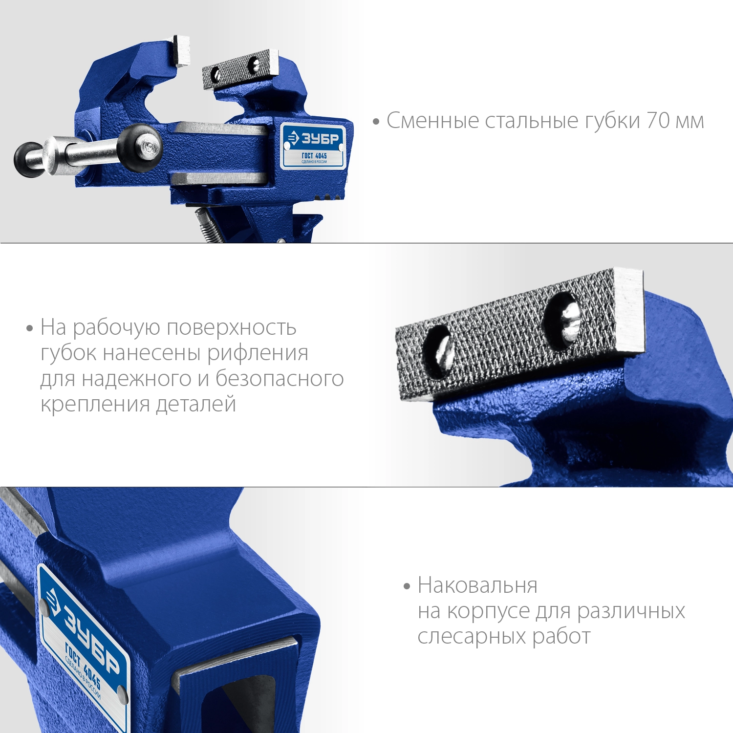 ПроизводителиТиски слесарные чугунные 70мм, со струбциной (32600-63_z01) ЗУБР