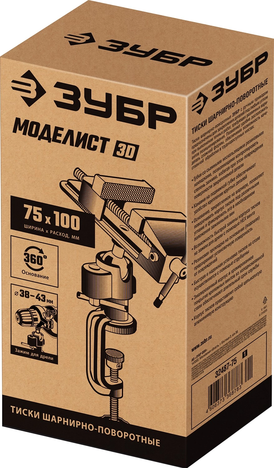 ПроизводителиТиски шарнирно-поворотные 75мм (32487-75_z01) ЗУБР