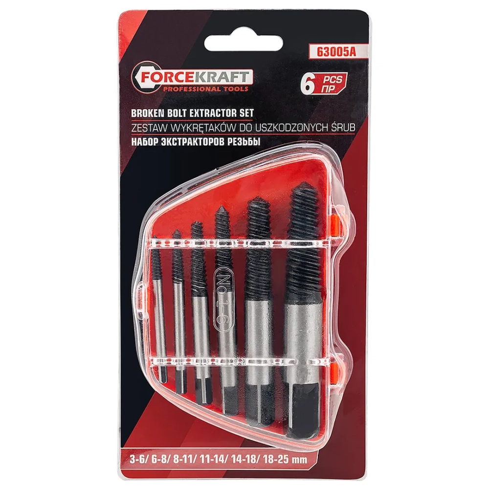 ПроизводителиЭкстракторы для извлечения заломанных болтов, набор 6пр. (FK-63005A) FORCEKRAFT
