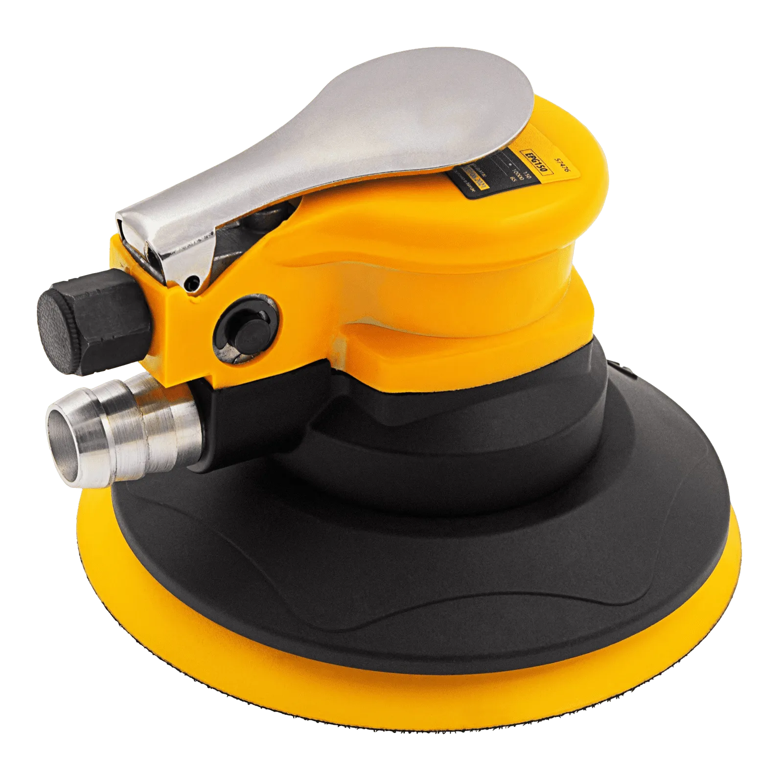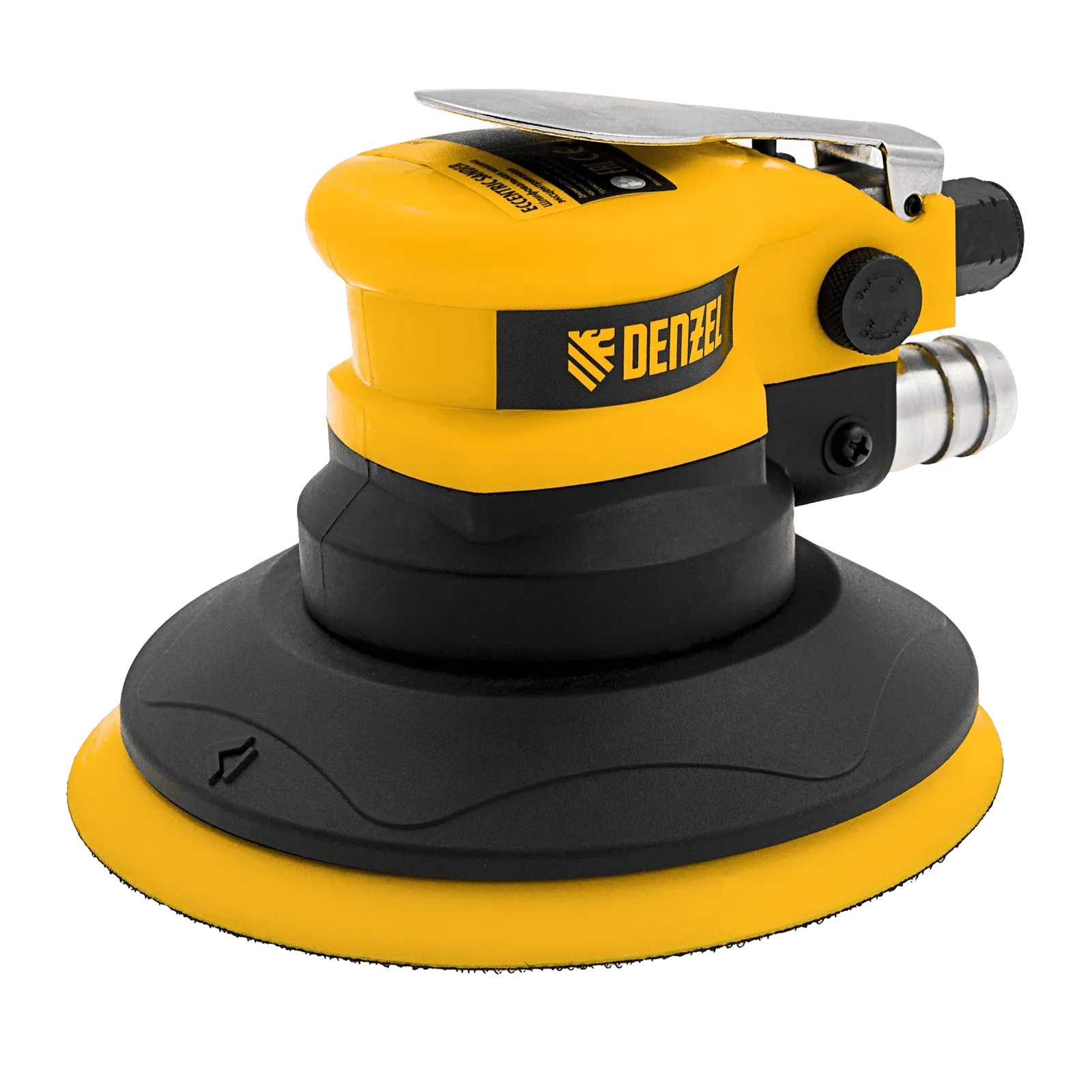 Пневматическая эксцентриковая шлифовальная машина Denzel EPG150 57476 с амплитудой 5 мм развивает скорость вращения 10000 об/мин при среднем расходе воздуха 160 л/мин.