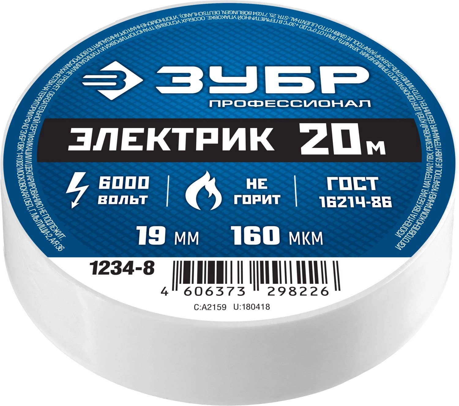 ПроизводителиИзолента ПВХ, 19мм/20м, белая "Электрик-20" "ПРОФЕССИОНАЛ" (1234-8) ЗУБР