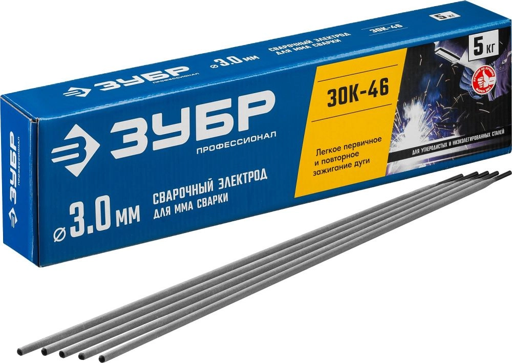 ПроизводителиЭлектроды сварочные Д 3.0 х 350 мм, ЗОК-46 рутил-целлюлозный, в коробке (уп. 5 кг)(40035-3.0) ЗУБР