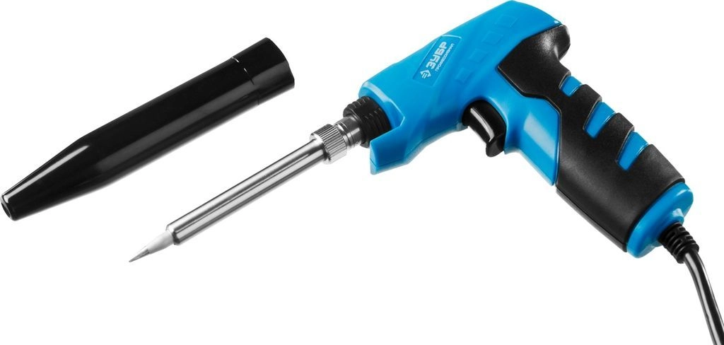 Паяльник оснащен медным жалом со специальным покрытием, обеспечивающим качественную пайку. Легкая пистолетная эргономичная рукоятка.