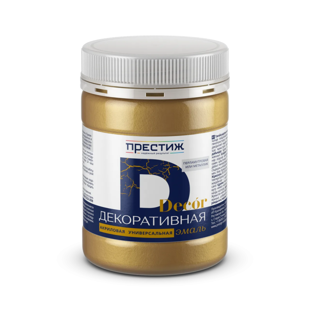 перламутровый или металлический блеск различных поверхностей; уф-, атмосферо-, водостойкая; универсальная; быстросохнущая; Декоративная обработка различных минеральных и бумажных поверхностей, металла, гипса, пенополистирола. Подчеркивает фактуру и придаёт покрытию декоративный перламутровый или металлический блеск. Для наружных и внутренних работ. Допускается применение в производственных, жилых и общественных зданиях, в том числе больницах, школьных и дошкольных учреждениях, а также для окраски помещений, в которых предусмотрен режим влажной дезинфекции. Универсальная. Легко наносится, быстро сохнет, экологически чистая. Без запаха и растворителей. Стойкая к мытью и истиранию. Образует водо-, свето- и атмосферостойкое покрытие. ; Поверхность: Дерево, металл, гипс, пенополистирол, минеральные и бумажные основания; Состав: Акриловая дисперсия, вода, пигменты перламутровые или металлические, функциональные добавки; Растворитель:Вода; Запах: Отсутствует; Время высыхания: 1 час; Расход: 80-100 г/м²; ТемператураПроизводитель: ТД «ПРЕСТИЖ» ХОЛДИНГ Россия, 344092 г. Ростов-на-Дону, пр. Космонавтов, 2/2