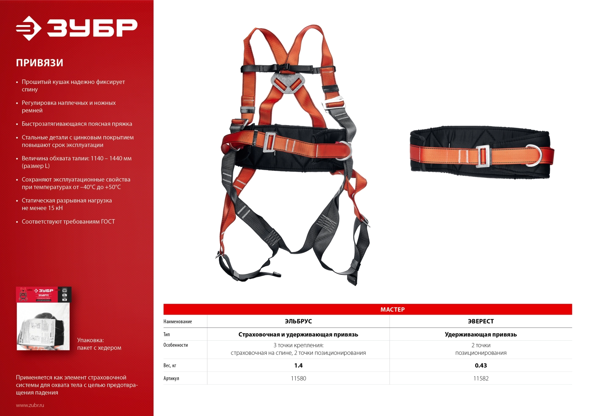 ПроизводителиПривязь удерживающая "Эверест" (11582) ЗУБР