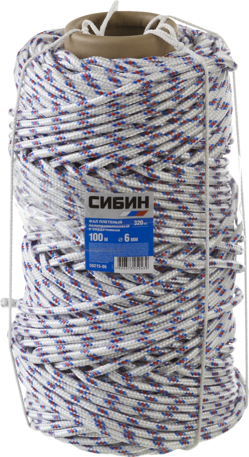ПроизводителиФал плетеный, с сердечником, полипропиленовый,d 6мм, 16-прядный, 100 м (50215-06) СИБИН