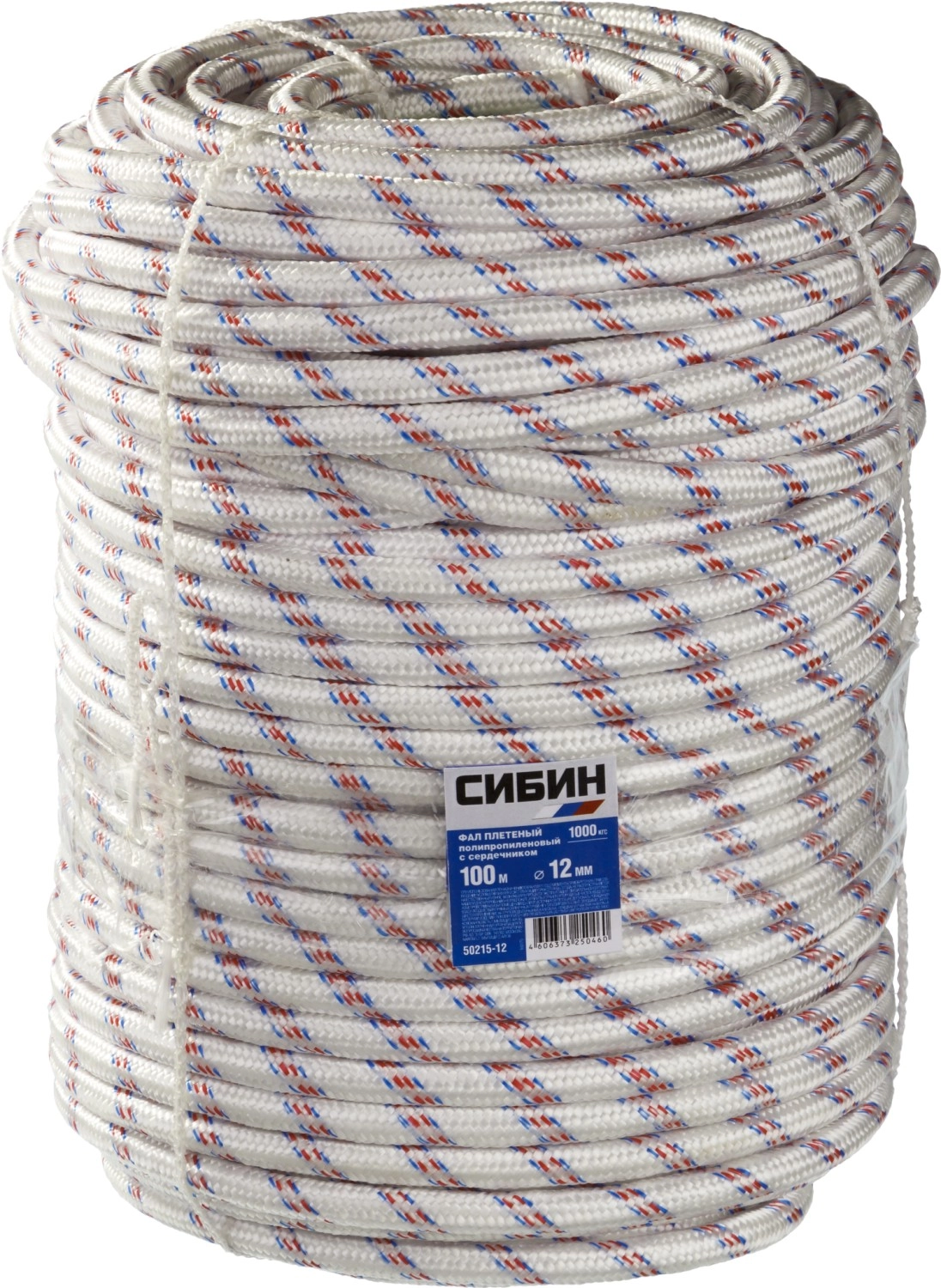 ПроизводителиВеревка (фал плетеный) 12мм, 100м. (полипроп. вязан. с сердечником)(50215-12) СИБИН
