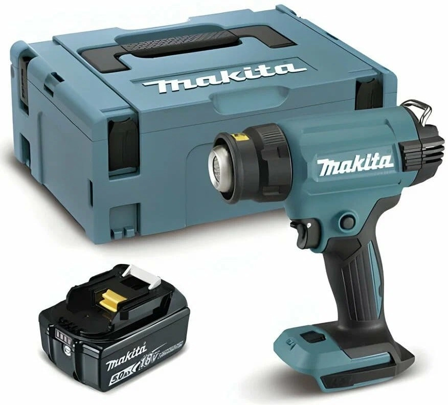 ПроизводителиФен технический аккум. DHG 180 RT1J (18.0 В, 1 акк. х 5.0 А/ч, 550С, 4 насадки, кейс) MAKITA