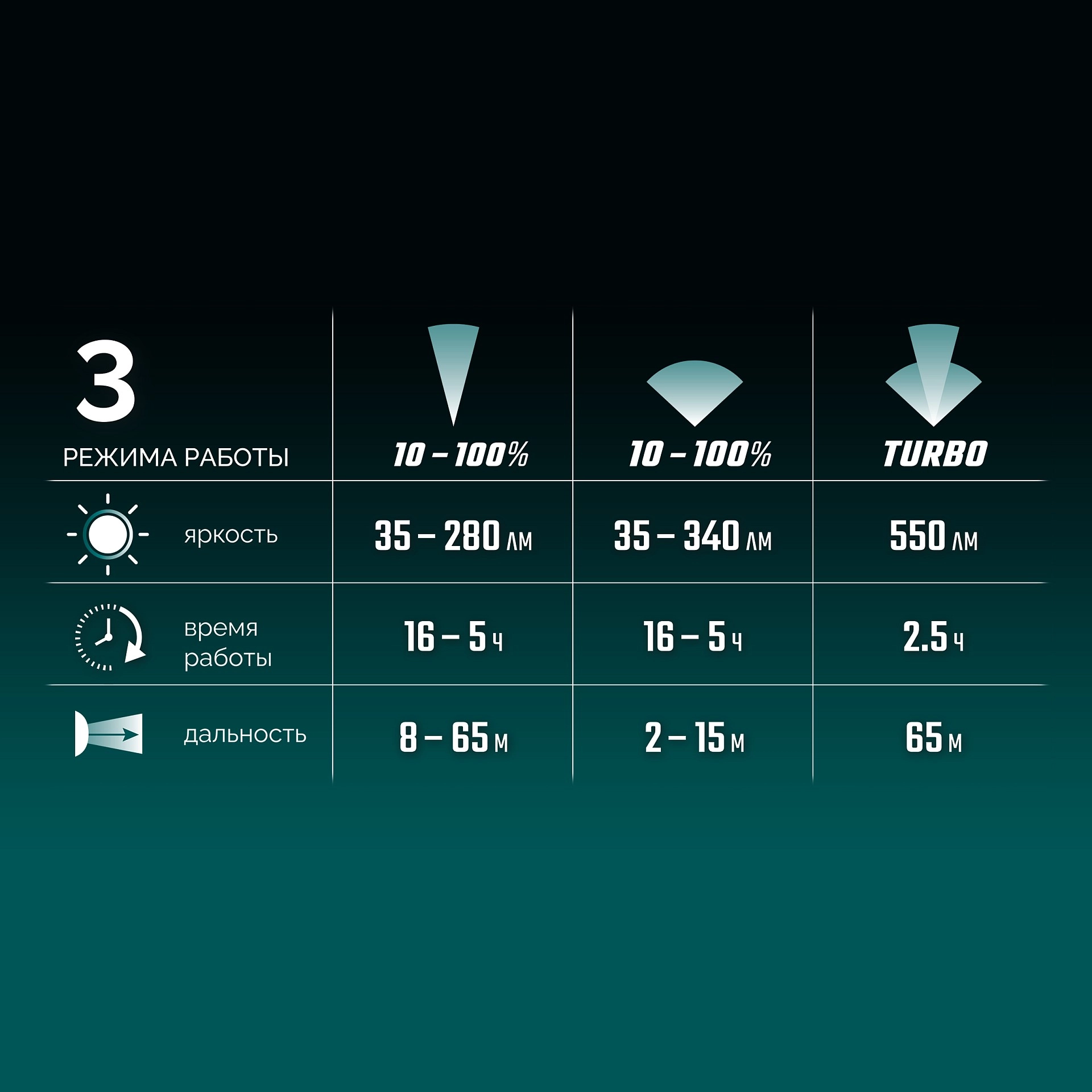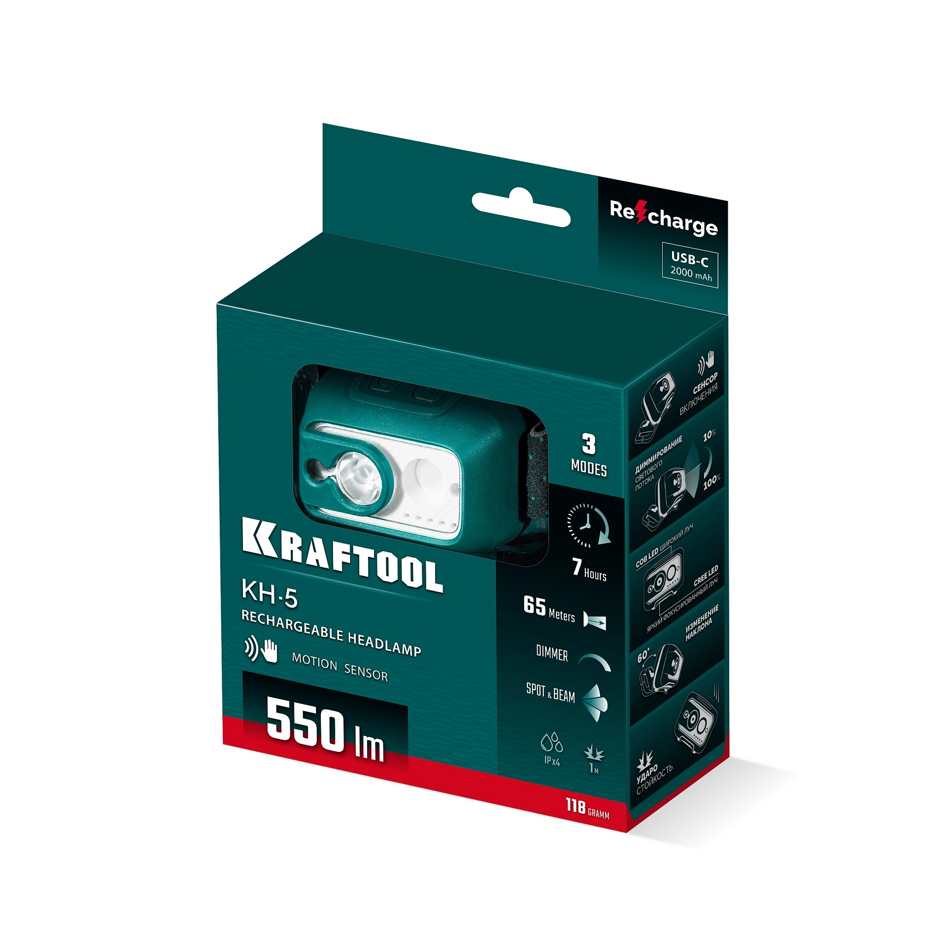 ПроизводителиФонарь налобный светодиодный аккум., 550 Лм, 65 метров, 3 режима "KH-5" (56454) KRAFTOOL