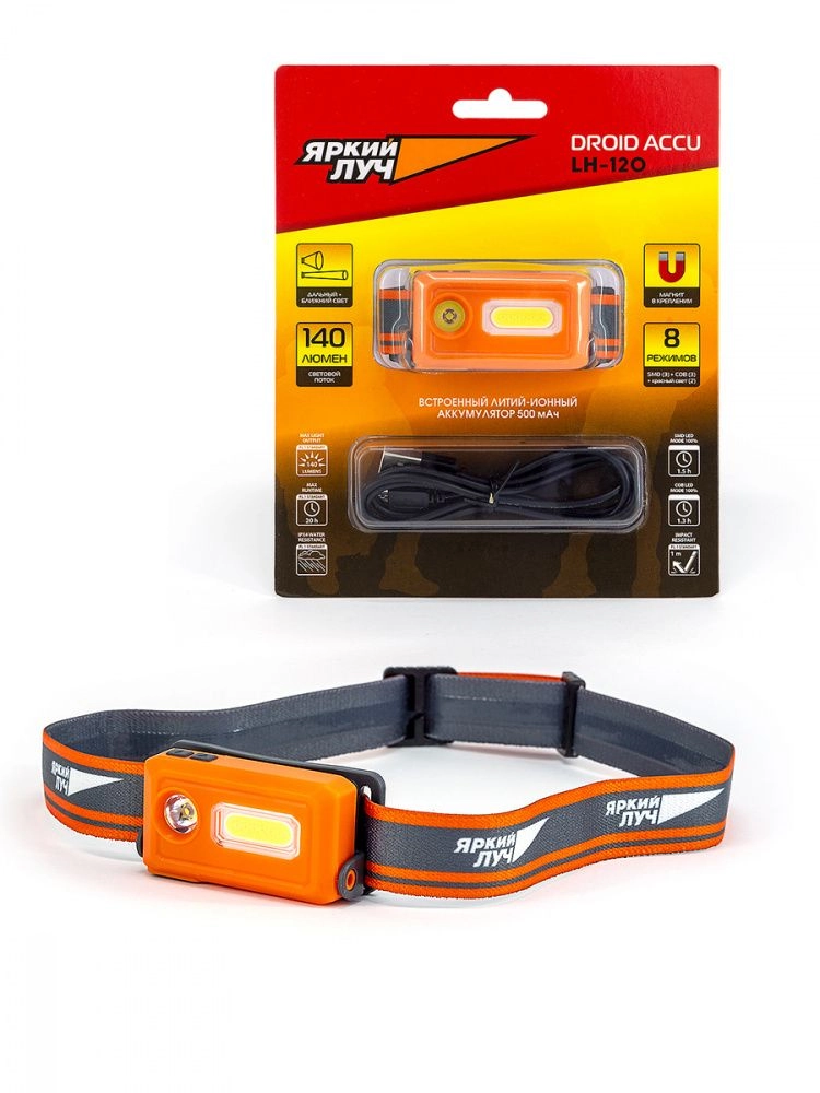 ПроизводителиФонарь светодиодный налобный LH-120 DROID ACCU (SMD 140 Лм 55м Li-lon 500мАч) ЯРКИЙ ЛУЧ
