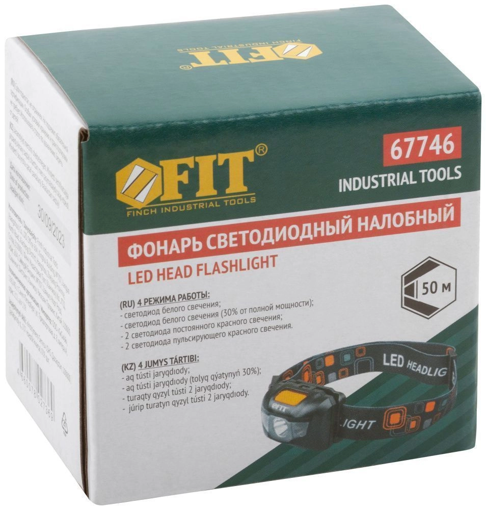 ПроизводителиФонарик с креплением на голову, сверхяркий светодиод 3Вт + 2 LED красн.цв. (3 ААА)(F_67746) FIT