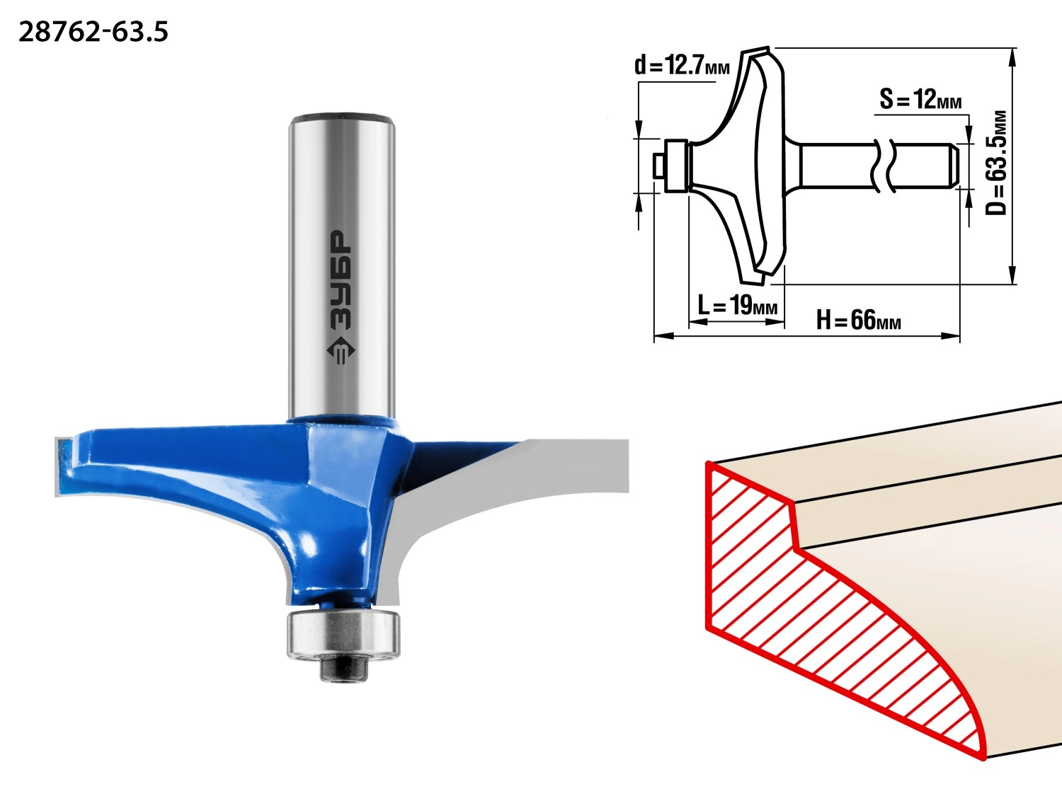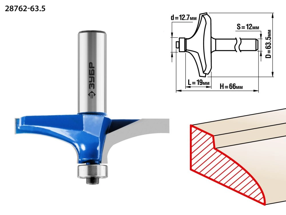 ПроизводителиФреза фигирейная №3, D= 63,5мм, рабочая длина-19мм, радиус -мм, хв.-12мм, d-12,7мм (28762-63.5) ЗУБР