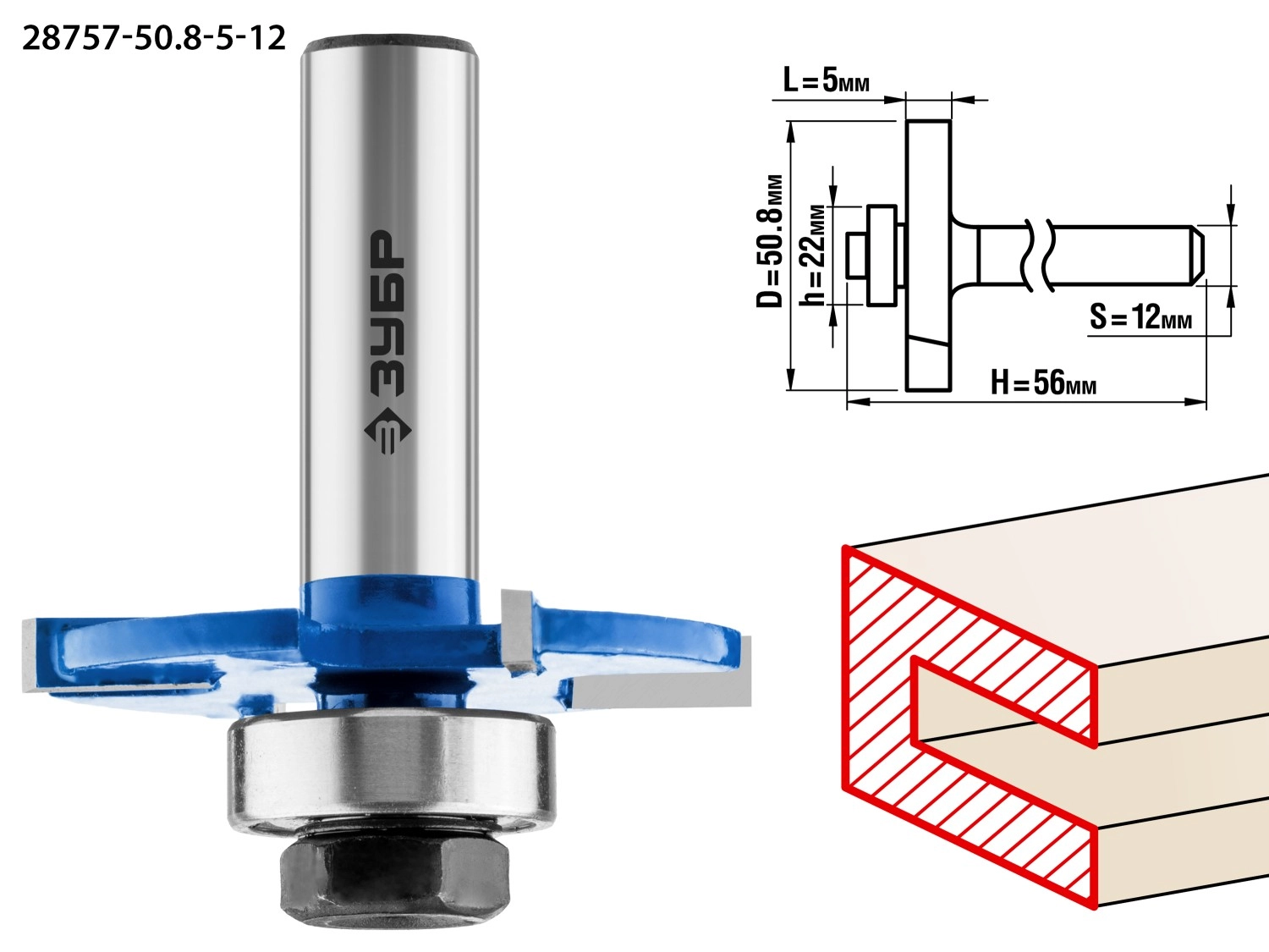 ПроизводителиФреза горизонтально-пазовая, D= 50,8мм, высота-5мм, хв.-12мм, d-22мм (28757-50.8-5-12) ЗУБР