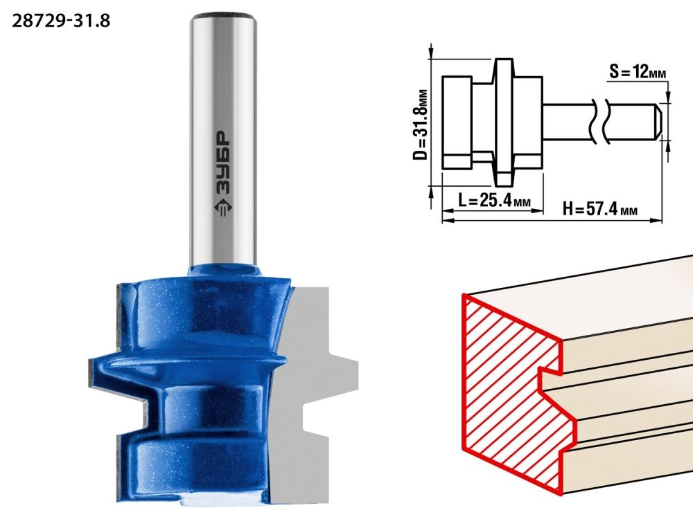ПроизводителиФреза комбинированная универсальная, D= 31,8мм, рабочая длина-25,4мм, хв.-12 мм (28729-31.8) ЗУБР