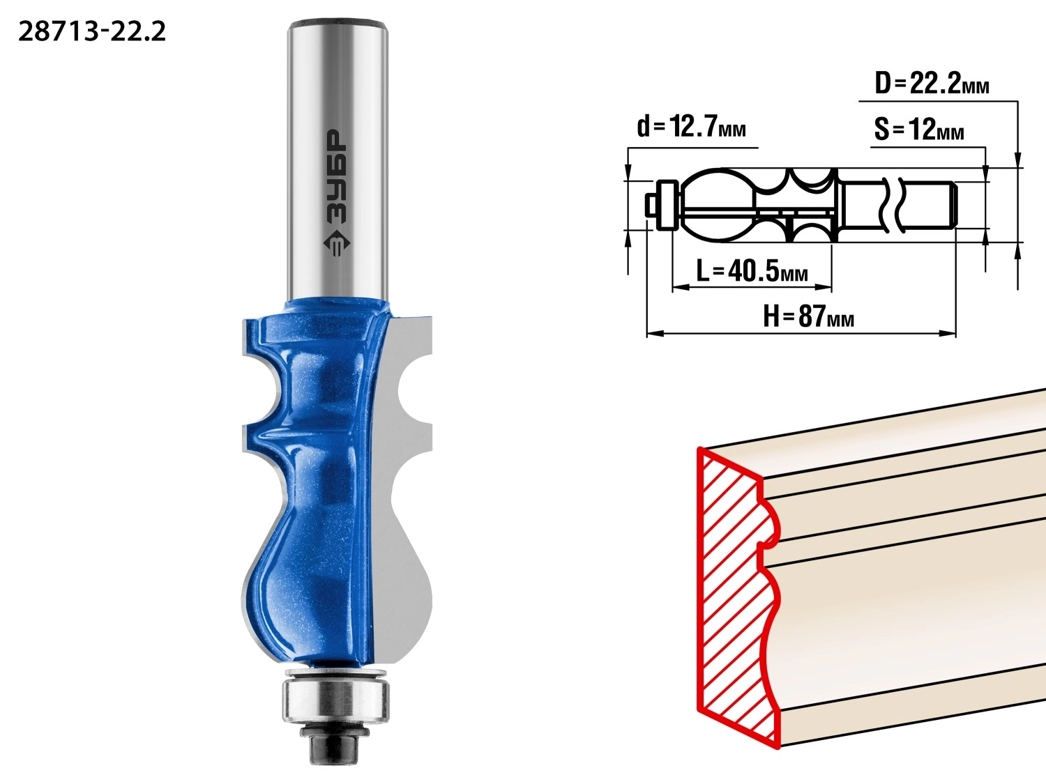 ПроизводителиФреза кромочная фигурная №2, D= 22,2мм, рабочая длина-40,5мм, хв.-12мм, d-12,7мм (28713-22.2) ЗУБР