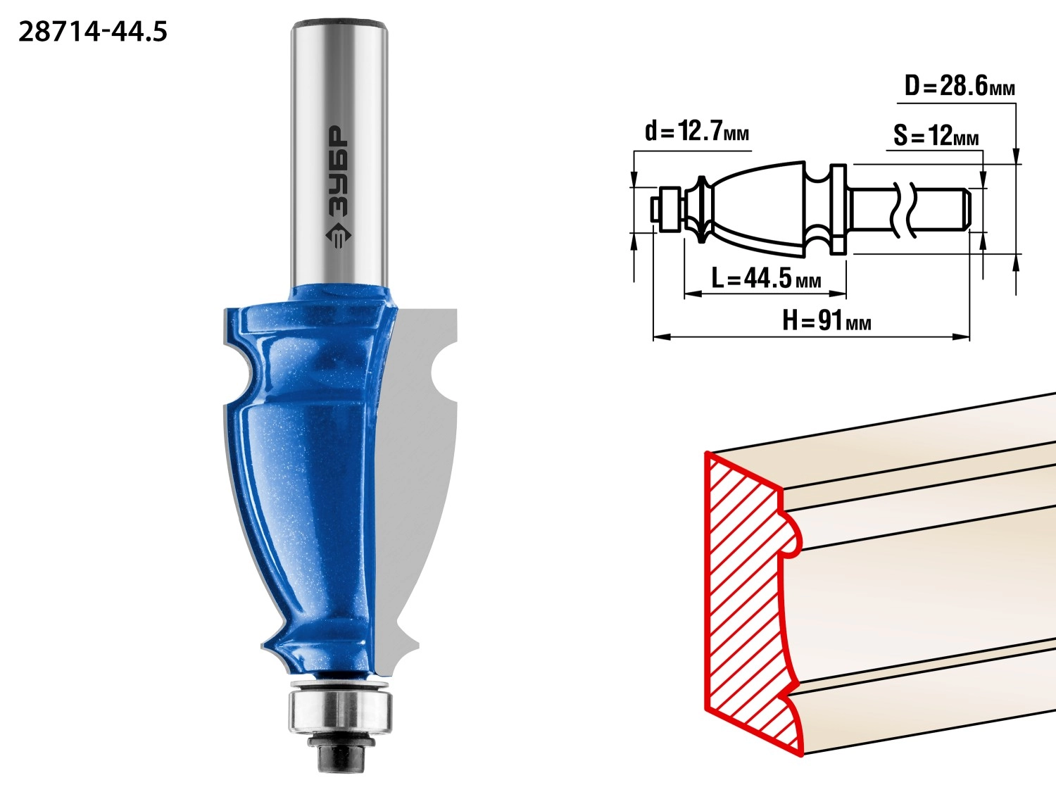 ПроизводителиФреза кромочная фигурная №3, D= 28,6мм, рабочая длина-44,5мм, хв.-12мм, d-12,7мм (28714-44.5) ЗУБР