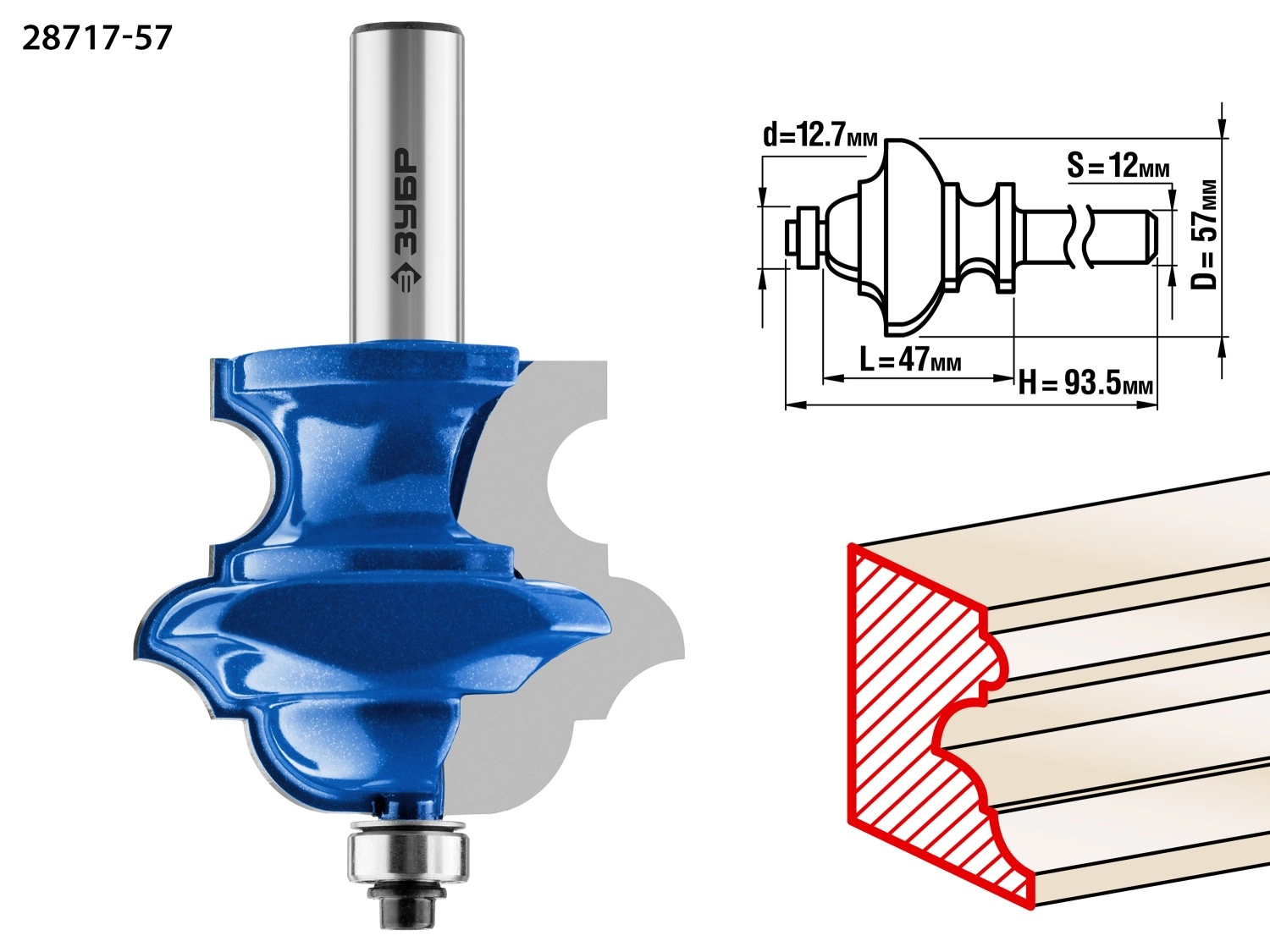 ПроизводителиФреза кром. фигурная №6(многопрофильная), D= 57мм, раб. дл.-47мм, хв.-12мм, d-12,7мм (28717-57) ЗУБР